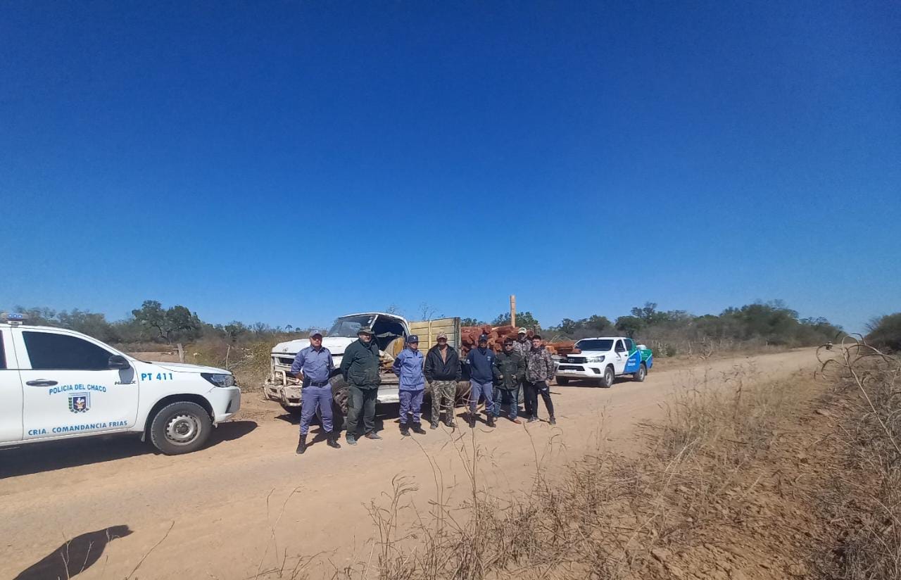 En la lucha contra los delitos rurales y, en el marco de los distintos operativos preventivos dispuesto en zonas del impenetrable chaqueño, pasada las 17:00 de ésta tarde, coordinaron trabajos mancomunados el personal de la Delegación de Bosque de la localidad de Fuerte Esperanza y los de la Comisaria Comandancia FrÃas, quienes emplazados sobres ruta conocida como "Picada El 12", demoran la marcha de un camión marca Chevrolet, conducido por un hombre de 68 años, quien transportaba la cantidad de setenta postes de madera de la especie de Quebracho colorado, sin contar con la documentación que ampare la procedencia y transporte del producto forestal.