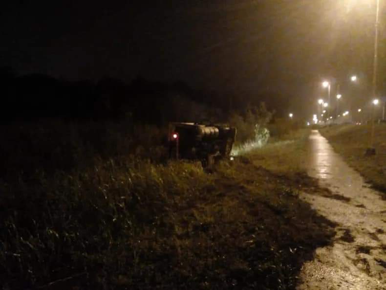 Alrededor de las 23.30, en el kilómetro 30 de la Ruta 30 un conductor de 48 años despistó su camión que trasladaba cargas de cemento. Según explicó el hombre, se le cortó la barra elástica del plato giratorio del acoplado y producto de ello perdió el control del enganchado.