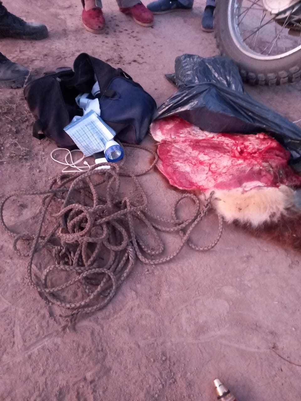 RURALES: TRAS FAENAR ILICITAMENTE UN ANIMAL VACUNO FUE DETENIDO. LE SECUESTRARON PRODUCTO CARNICO, UNA MOTOCICLETA Y VARIAS HERRAMIENTAS.