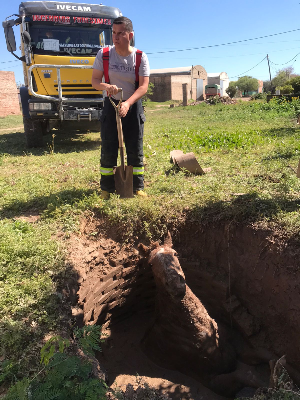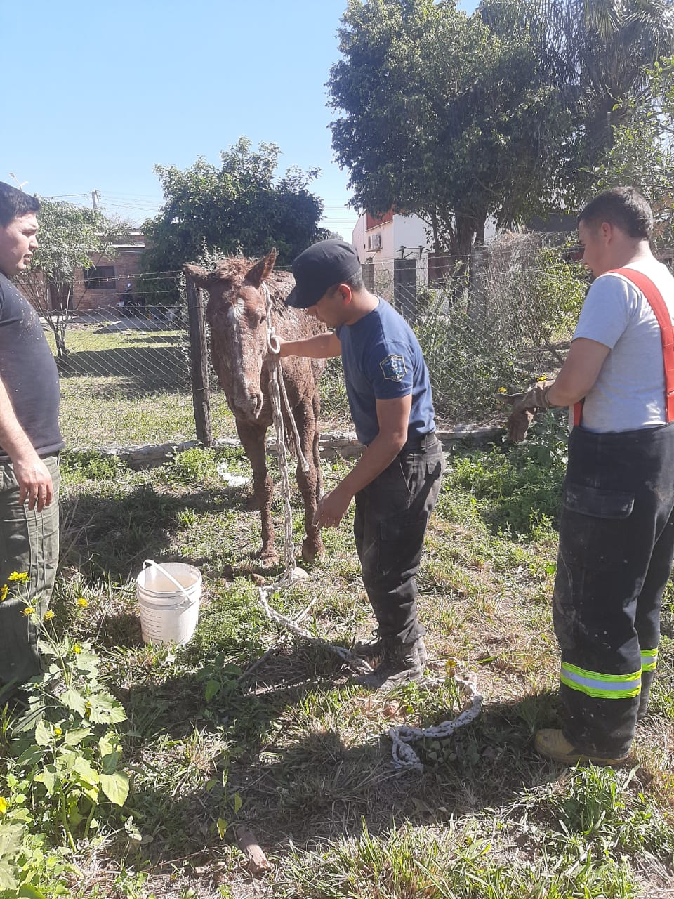 La sección Restacate y Salvamento de la División Bomberos de esta ciudad, intervinieron para socorrer a un animal equino que había caído y quedo atrapado en el interior de un pozo perteneciente a un domicilio particular de la Chacra 19. Pasado este mediodía, vecinos solicitaron la colaboración del personal de Bomberos, quienes acudieron al lugar y establecieron en el interior de un pozo de una perforación de 2 mts de diámetro por 2 mts de profundidad, a un animal equino, sexos macho, pelaje colorado, que se encontraba incrustado sin posibilidad de escapar. Gracias al trabajo de los Bomberos, utilización de equipos adecuados y a la ayuda de algunos vecinos, lograron rescatar al salvaje para entregarlo nuevamente al cuidado de su dueño.