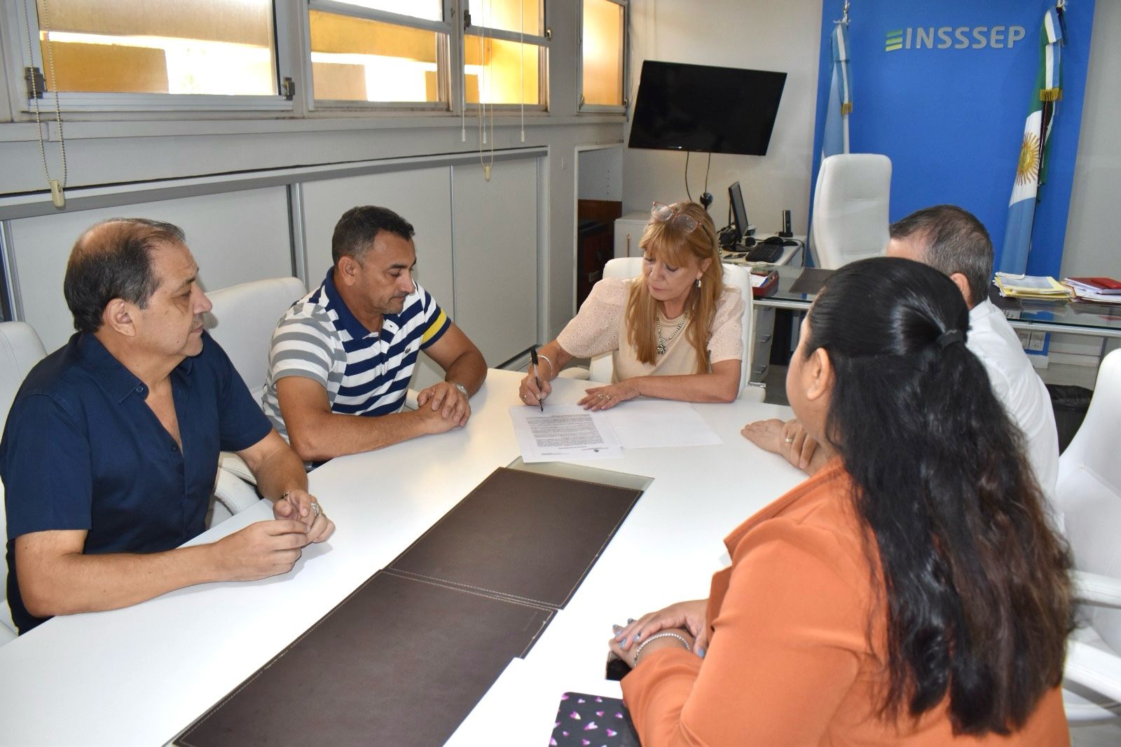 La titular del INSSSEP, Irene Dumrauf; y el Presidente del Instituto del Deporte Chaqueño, Fabio Vázquez, firmaron un convenio de cooperación y articulación para la promoción y fortalecimiento de políticas deportivas, recreativas y educativas, destinadas a los afiliados del Instituto.