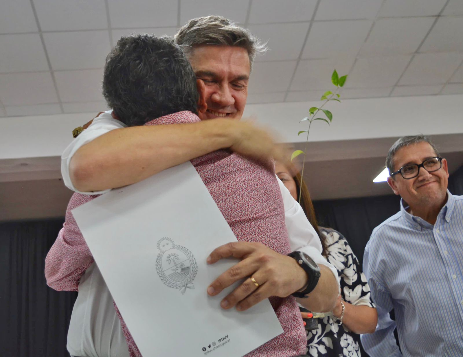“Sabemos que tenemos que acompañar a todas las familias con déficit habitacional que tenemos para lograr el techo propio y hoy lo estamos haciendoâ€, dijo Zdero quien además anunció que avanzarán en obras de pavimento urbano y garantizó el ripio de enero solicitados por la intendente municipal.