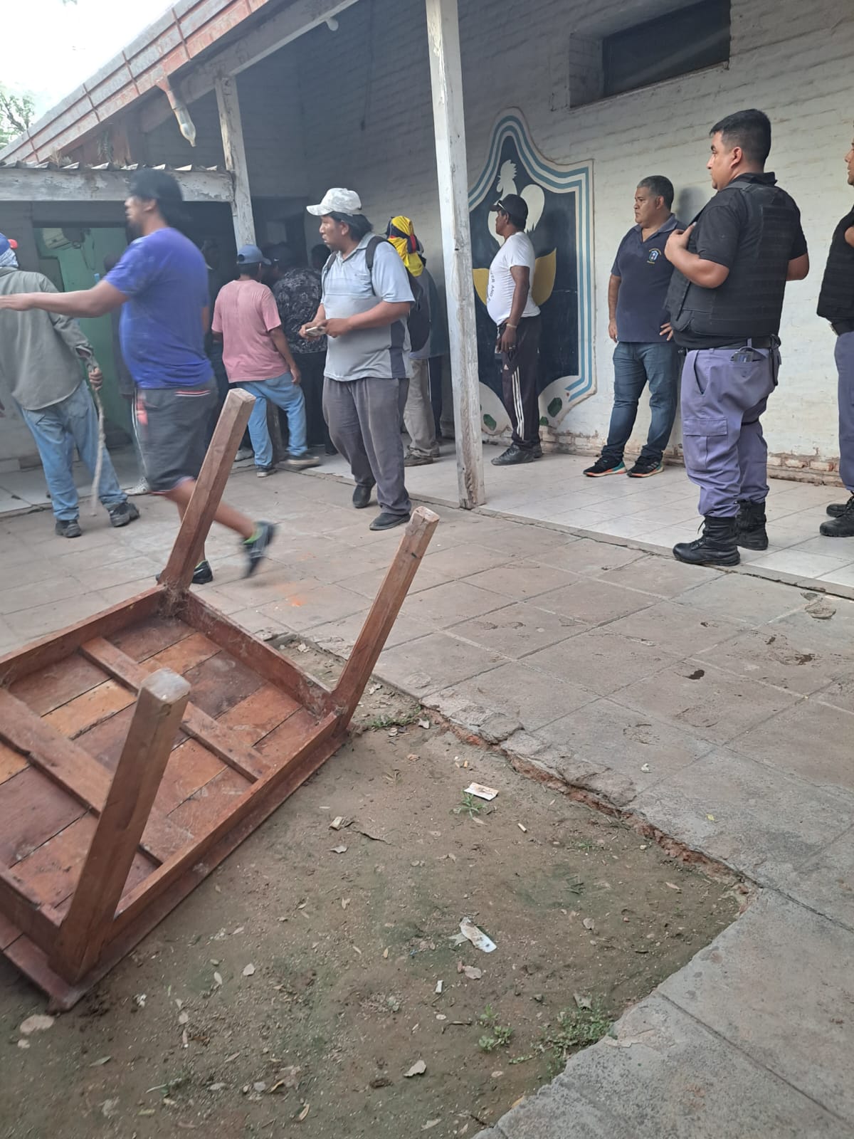 Cerca de las 15, el personal policial finalizó la jornada de Búsqueda, para dar con el paradero del joven Salustiano Giménez de 16 años. El operativo de rastrillaje arrojó resultados negativos. Ante esta situación los familiares y demás miembros de la comunidad originaria se manifestaron de manera agresiva ante la autoridad policial. Atacaron la Comisaría Nueva Pompeya, ya que querrían tomar la justicia en sus manos y atacar al único detenido por la causa que se investiga por la desaparición del adolescente desaparecido. Un total de unas 200 personas, algunas encapuchadas, otros con machetes, palos y todo tipo de elementos contundentes, se presentaron en esa unidad y sin mediar palabras avanzaron con total agresividad y violencia rompieron el cordón humano del personal policial, tomando el interior del edificio policial. Rompieron vidrios, ventanas, electrodomésticos, entre otros. Además, intentaron ingresar al sector de celda en búsqueda del detenido, no logrando su cometido en razón a que se logró extraer y trasladar en tiempo oportuno a todos los detenidos para resguardar su integridad. Hasta el momento, se registran seis empleados policiales con lesiones y daños en tres móviles policiales de Infantería, Comisarias Misión Pompeya, Comandancia Frías y un vehículo particular, mientras continúaban con los desmanes se dirigieron con total impunidad hasta el Juzgado Multifueros para continuar con los daños. Con la urgencia del caso, salen refuerzo para los efectivos policiales que se encuentran en el lugar.
