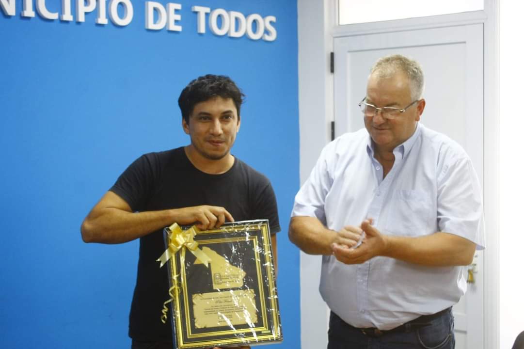 El intendente Pío Sander, junto a las autoridades municipales, extendieron un cálido recibimiento al talentoso artista Piko Frank y a los integrantes de su grupo. La ocasión marcó la entrega de un significativo reconocimiento por su destacada consagración como revelación en el "Festival de Doma y Folklore de Jesús María 2024", un logro que resuena a nivel nacional.
