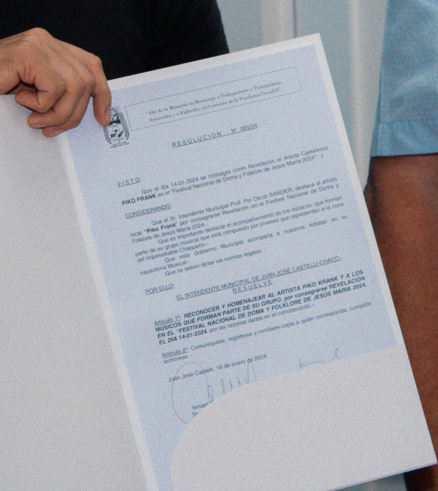 RECONOCIMIENTO A PIKO FRANK Y SU GRUPO POR SU ÉXITO EN EL "FESTIVAL DE DOMA Y FOLKLORE DE JESÚS MARÍA 2024"