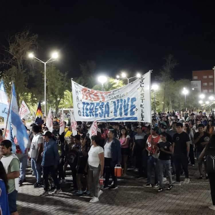 En la tarde noche del 24 de enero organizaciones sociales y sindicales se concentraron en la plaza San Martín de JUAN JOSE CASTELLI, luego marcharon hasta la avenida Güemes , finalizando en el lugar de partida.