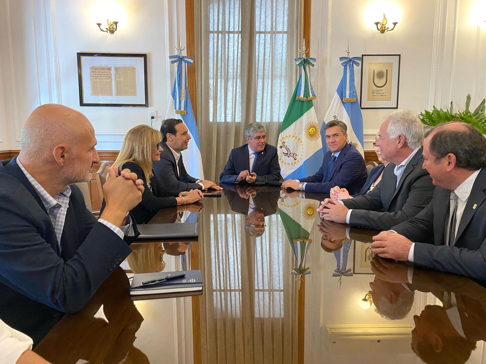 El encuentro, realizado en las oficinas del rectorado de la UNNE en Corrientes, participó además la ministra de Educación, Cultura, Ciencia y TecnologÃa del Chaco SofÃa Naidenoff, la ministra de Educación de Corrientes, Itatà López Práxedes y los ministros de Obras Públicas, Hugo DomÃnguez (Chaco) y Claudio Polich (Corrientes).