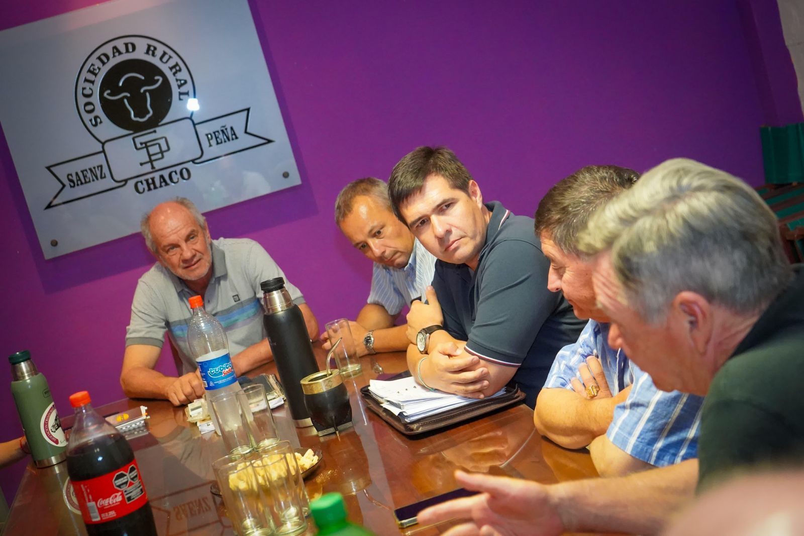 El ministro de la Producción y el Desarrollo Económico Sostenible, Hernán Halavacs, acompañado del intendente de Sáenz Peña, Bruno Cipolini, y el subsecretario de Agricultura, Oscar Pascual, se reunió con representantes de la Sociedad Rural local y de la Federación Agraria