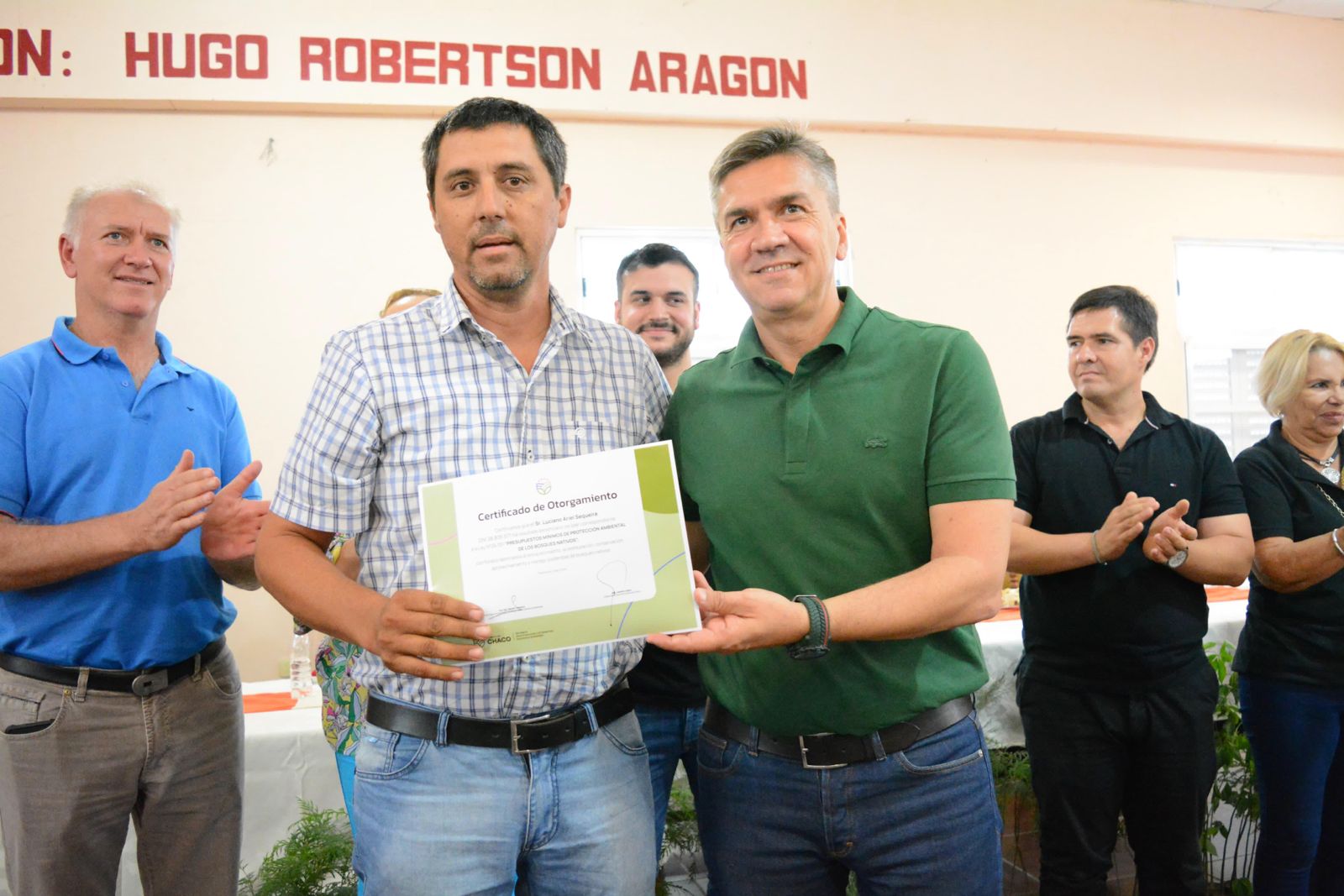 El gobernador Leandro Zdero, acompañado del ministro de la producción, Hernán Halavac, entregó, hoy sábado, en la sede de la Asociación Empresaria y Forestal del Oeste Chaqueño (AEFOCH) 21 beneficios a productores forestales, correspondientes al plan de “Presupuestos Mínimos de Protección Ambiental de los Bosques Nativos” (Ley N°26.331) destinados a la restauración, conservación, aprovechamiento y manejo sostenible de bosques nativos.