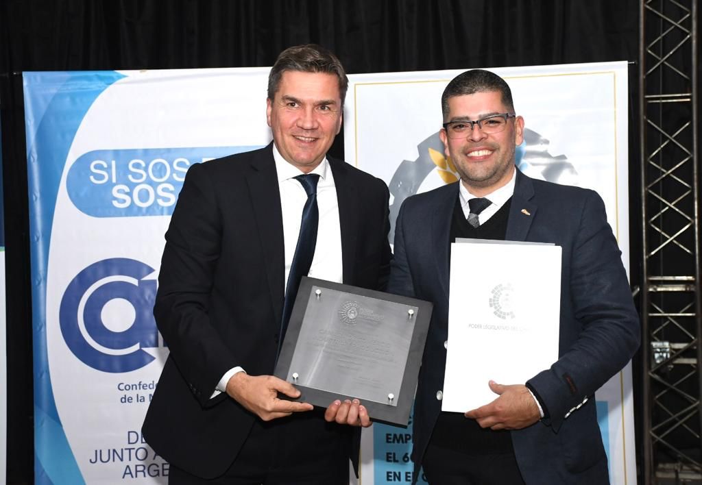 *El diputado provincial Leandro Zdero participó del aniversario 70 de la Cámara de Comercio de Gral. Pinedo junto a las autoridades, socios, empresarios y vecinos de la zona. Durante la cena de gala, realizada este sábado, el legislador entregó un reconocimiento por la tarea y el compromiso, de tantos años, en favor del desarrollo que lleva adelante la institución.* En el marco de este nuevo aniversario, durante su discurso, Zdero manifestó: _“Felicito a su presidente Edgar Ledesma, socios y empresarios de la Cámara de Comercio de Gral. Pinedo por sus 70 años de esfuerzo, trabajo y compromiso que seguramente han debido sortear con muchos obstáculos, pero han marcado un faro importante de crecimiento de esta ciudad. Sus obras y la tarea los hicieron grande a Pinedo junto a todo el sudoeste chaqueño para convertirlos hoy en la matriz productiva tan importante para nuestra provincia”._ A fines de documentar la historia de la Cámara de Comercio de General Pinedo, se estableció en un viejo libro de actas (que se conserva hasta el día de hoy) fechado como fundación como el 9 de junio de 1952 y registrado en Personería Jurídica con el número 1178/81. El 25 de marzo de 1959, siendo presidente don Emilio Vildósola y secretario Don Juan Felicito, se reúnen junto a Benjamín Mateo, Francisco Turk, German Pogoriles, José Parra, Enrique Temprano y José Córdoba, para la instalación de una agencia bancaria que la población no contaba y generaba enormes dificultades a los productores y comerciantes. Otros vecinos como Don Pedro Parra, Ángel Martin, Vicente Rozas, Oscar Micheloud, Moisés Azulay, Guillermo Yulán, Juan Tirantino, Pedro Rozas, entre otros, se sumaron a ponerle el hombro a la Cámara y a las necesidades de la comunidad pinedense En la década del ´80, y contando con un edificio propio, la Cámara se caracterizó por colaborar con entidades de bien público, asociaciones civiles e instituciones, ofreciendo su local para realizar charlas y conferencias con profesionales. Los años 90 fueron años de innovación y cambio en cuanto al crecimiento del comercio local y uno de los temas prioritarios en la Institución fue la pavimentación de las calles de la ciudad. Llegó después, un nuevo milenio y trajo consigo nuevos proyectos donde se realizó Un arduo trabajo en conjunto con FECHACO y localidades vecinas para obras en el Sudoeste Chaqueño como la construcción del Acueducto del Sudoeste, el pedido para asfaltar la Ruta 13 que unía Gral. Pinedo con Villa Ángela, la rebaja de impuestos en ingresos brutos por parte de la Dirección General de Rentas, entre otros. Años más tarde, se comienza a gestionar el tan anhelado sueño de todos los pobladores y comerciantes: la Sucursal del Banco de la Nación Argentina. Tiempos de cambio, de construcción de progreso, de trabajos mancomunados, así se llega a los 70 años de la Institución con una activa participación de socios y dirigentes jóvenes; tomando la experiencia y sabiduría de comerciantes que han pasado por anteriores comisiones, aliándose de nuevas tecnologías, ideas y estrategias, trabajando *comprometidos por el crecimiento y desarrollo comercial de General Pinedo.*