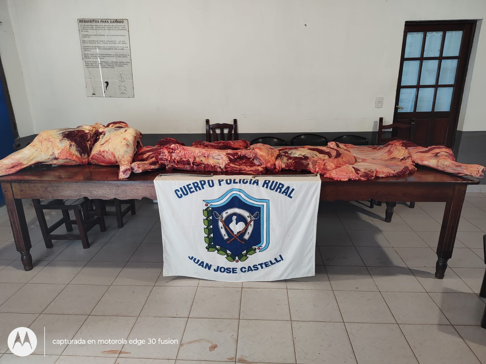 ,interceptan paso de (01) una camioneta, marca Ford, modelo F100 color azul, guiado por el ciudadano M. K. ( 50), domiciliado Paraje Pampa Castro, donde a simple vista se observa en caja rodado bultos tapados con una carpa color verde, donde al inspeccionar contenía producto cárnico aparentemente bovino *sin la cadena de frio correspondiente*. Asimismo al solicitarle documentaciones que acredite la procedencia y traslado, referido K. aduce no poseer documental alguna, Examinado Producto cárnico por médico veterinario, dio cuenta misma *No se encuentra apto para el consumo humano*. Ilustrado Jueza de Faltas local dispuso, *SECUESTRO* del vehículo y Producto cárnico (aproximadamente doscientos diez kilogramos) animal entero, y en tanto conductor fue notificado acta contravencional en Libertad por Infracción Artículo 45° de la ley 850-J, posteriormente secuestro carnico fue entregado al Zoológico de la ciudad de Presidencia Roque Sáenz Peña; Asimismo los uniformados tratan establecer procedencia del semoviente faenado e incautado. Se prosigue con etapa investigativa del caso. POLICÍA RURAL J.J.CASTELLI.