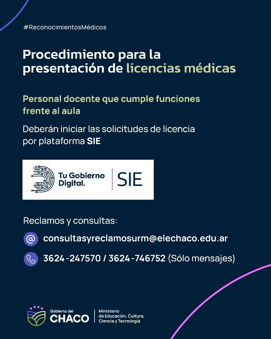 El objetivo es eficientizar el trámite online, acompañar y realizar el seguimiento al docente que está padeciendo una enfermedad y ejercer un mayor control de las licencias._ El procedimiento para la solicitud de licencias es el siguiente: el docente o agente solicitante debe, en primer término, dar aviso a su superior jerárquico, informando que no va a asistir a su lugar de trabajo por razones de salud, de conformidad a lo establecido en la Ley 647-E del Estatuto del Docente, artículo 313 inciso D, y la Ley 645 – A del Régimen Licencias y Permisos Administración Pública. En el caso de docentes, una vez realizado el aviso, dentro de las 48 horas debe subir el certificado médico y estudios complementarios, en caso de que el sistema lo requiera, al SIE. De esta manera, se completa la solicitud de la licencia y el caso pasa a manos de un médico auditor de la URM, el cual procede a verificar el certificado y estudios complementarios, emite el dictamen correspondiente y sube la información al sistema en un trámite inmediato. Para el caso del personal nodocente, el superior jerárquico deberá iniciar la solicitud completando el formulario online disponible en bit.ly/solicitudrecmed. Si se trata de licencias inferiores a 10 días, deberá enviar los estudios complementarios a los números de Whatsapp habilitados: 3624- 687828 o 3624- 252692; para licencias de más de 10 días, enviarlos al correo [email protected]. Desde la URM informaron que para mediados de junio se habilitará la carga en la aplicación SGT de Tu Gobierno Digital para agentes de planta permanente, simplificando así este trámite. El doctor Valdez, responsable de la Unidad de Reconocimientos Médicos, explicó que en aquellos casos en que el agente o docente solicita una licencia de más de 3 días, siempre deberá presentar un estudio complementario, y que dichas licencias, más prolongadas de lo habitual, "nunca serán negadas si la solicitud es respaldada por la documentación pertinente". "No podemos justificar más (días de licencia) de lo que corresponde según la patología -dice Valdez-. En casos normales, se considera que dentro de las 48 horas de tratamiento, y si va todo bien, el paciente debe tener una mejoría tal que lo deje ir a cumplir con su actividad laboral; ahora, si el docente, a pesar de ese tratamiento, no mejora, obviamente que va a volver a su médico de cabecera, este le va a librar otro certificado, le va a hacer una nueva evaluación y le va a pedir algún estudio complementario", precisó, agregando que la URM está teniendo en cuenta "todas las situaciones individuales, porque no es lo mismo un paciente que está viviendo en Resistencia o en un lugar donde accede con facilidad a un estudio complementario, a un especialista, que aquel docente que vive y está trabajando en lugares muy alejados de esos centros médicos con especialidades, y se toma en cuenta eso también". Por consultas o reclamos, los agentes solicitantes pueden enviar mensaje de WhatsApp a los teléfonos 3624- 247570 y 3624- 746752. También pueden escribir al correo electrónico [email protected].