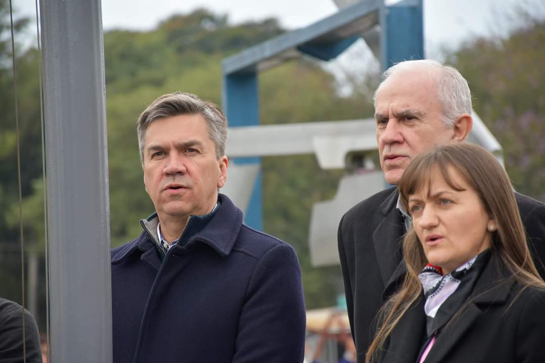 El gobernador Leandro Zdero junto a la vicegobernadora Silvana Schneider, al intendente Roy Nikisch y al presidente de la Fundación Urunday, Josese Eidman acompañaron, en la mañana de este sábado, la apertura de la Bienal del Chaco con el izamiento de las banderas en el predio. “comenzó el mundial de las esculturas, que en realidad es nuestra Bienal del Chaco y felizmente podemos decir que se expresa como uno de los eventos realmente más trascendentales, así que muy contentos de recibir a los escultores de diferentes países del mundo.
