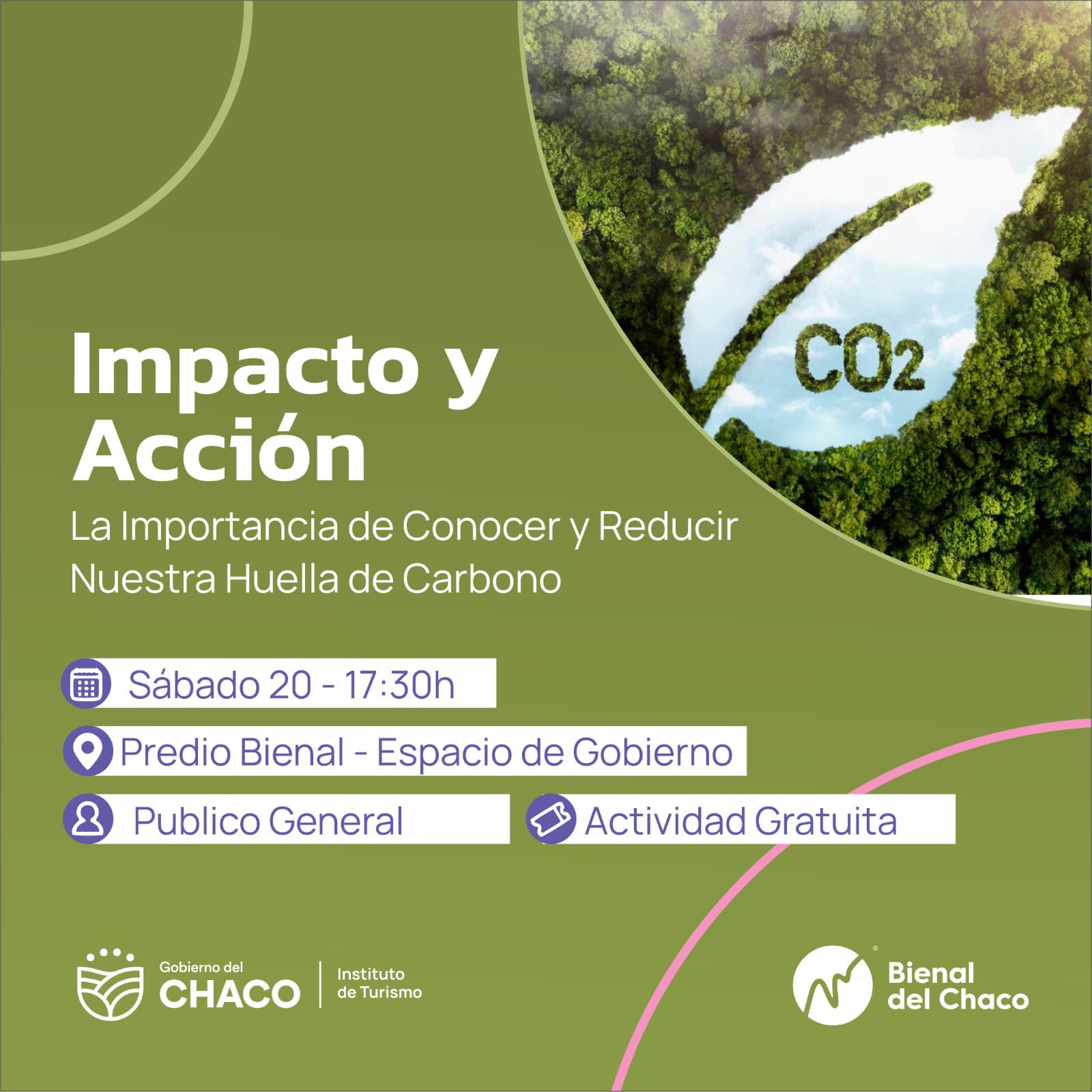La jornada comenzará con una charla a cargo de los integrantes del Chaco Bureau, quienes disertarán sobre la medición de la huella de carbono en la Bienal del Chaco. Se presentará el trabajo realizado para convertir al evento en una EcoSede y las acciones encaminadas hacia un destino sustentable. Se destacará el esfuerzo por hacer que los eventos sean cada vez más amigables con el medio ambiente.