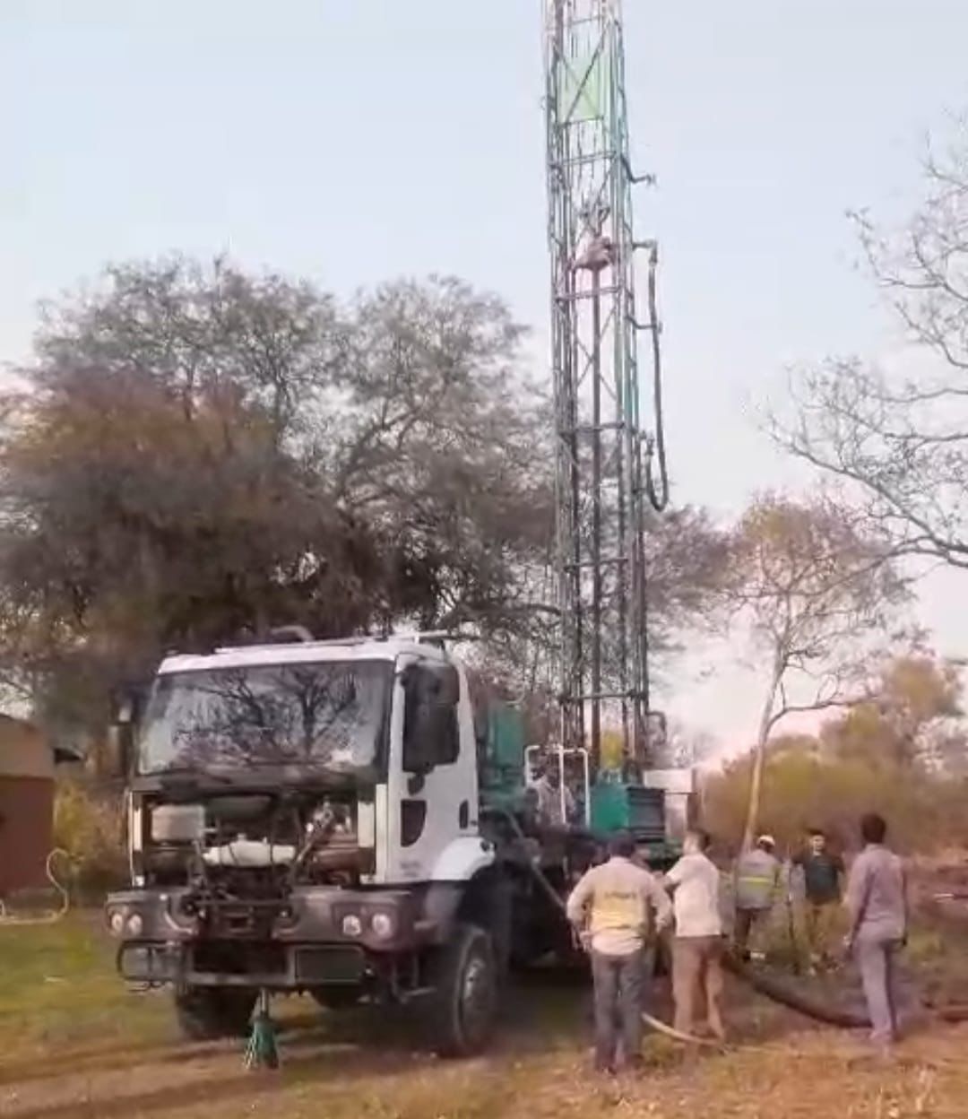 SAMEEP: CAMIÓN PERFORADOR RECUPERADO, REALIZA TRABAJOS EN LA ESCUELA 45 DE EL PALMAR.