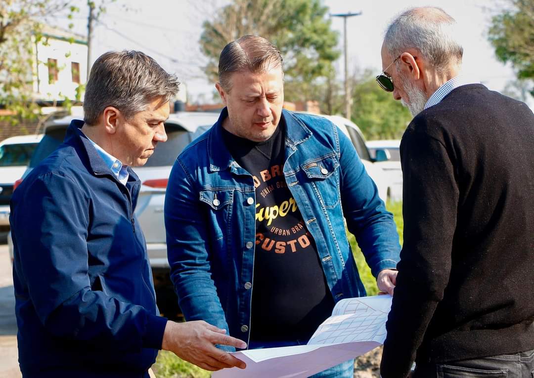 El gobernador Leandro Zdero, junto al administrador de la Dirección de Vialidad Provincial (DVP) Omar Canela y al secretario de Obras Públicas de la municipalidad de Resistencia, Luis Zarabozo estuvieron, este jueves, en las obras de pavimentación y ripio que se llevan adelante en el Barrio Aramburu, de Resistencia.