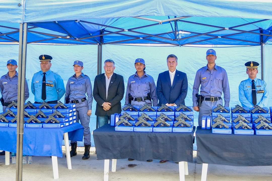 El gobernador Leandro Zdero junto al ministro de Seguridad Hugo Matkovich y al jefe de la Policía del Chaco Fernando Romero, entregó este mediodía una nueva partida de 448 armas reglamentarias para agentes y oficiales de policía recién egresados. “Estamos equipando a nuestros nuevos policías en el marco de un compromiso que hicimos con los chaqueños de apostar a la seguridad, garantizando recursos humanos y equipamiento adecuado”, subrayó el primer mandatario provincial. Desde el Departamento de Logística – División Arsenales, Zdero entregó las pistolas calibre 9 mm de doble acción, de última generación. “Frente a una situación catastrófica de deuda en la que nos dejaron la provincia, estamos haciendo una administración responsable y transparente para financiar acciones de este tipo con el objeto de garantizar la paz social y la seguridad de todos los chaqueños”, apuntó. *La adquisición de armas se enmarca en un programa integral que prevé también la compra de 600 chalecos antibalas, 10 camionetas que serán asignadas a El Impenetrable y más de 20 vehículos recientemente adjudicados, entre otros elementos.* En paralelo, avanza la gestión del crédito del Banco Centroamericano de Integración Económica (BCIE) para el Programa de Seguridad Ciudadana que prevé la compra de equipamiento y obras de refacción en comisarías y dependencias del Servicio Penitenciario. “En Chaco no se hacían compras para la Policía desde hace muchísimo tiempo; en cambio nosotros queremos poner en valor la noble tarea del policía de cuidar a los chaqueños”, remarcó el gobernador. Valoró así el trabajo de la cúpula policial y del Ministerio de Seguridad que se refleja en los múltiples operativos en terreno para combatir todo tipo de delitos, incluyendo el narcotráfico y el crimen organizado. *Armas Taser y otras adquisiciones* En otro orden de cosas, Zdero se refirió a la reciente aprobación en la Legislatura del uso de las armas Taser y adelantó que se procederá a su adquisición. “Estamos de acuerdo con esto ya que es importante para la tarea de prevención, tal como ocurre en otros lugares del mundo y del país”, dijo. El ministro Matkovich explicó que se trata de dispositivos electrónicos no letales y añadió que en paralelo se trabaja también en la adquisición de pistolas y escopetas de última generación que se utilizan en las principales policías del mundo. Los agentes son capacitados previamente para el uso de estas armas. “Son avances de la tecnología al servicio de la seguridad que estamos incorporando, antes egresaban policías que no llegaban a efectuar ni tres tiros; eso es una vergüenza pero ahora se terminó y los agentes están debidamente capacitados”, acotó. El jefe de Policía Fernando Romero destacó también la aprobación del uso de las taser que ubica al Chaco como la primera provincia en hacerlo, luego de la Ciudad Autónoma de Buenos Aires. “Es una herramienta más de trabajo para la policía; nos viene muy bien toda arma disuasiva no letal que tengamos a disposición”, sostuvo. Por otro lado, destacó la presente entrega de armas y dijo que se trata de un hecho histórico, ya que por una cuestión presupuestaria la Policía entregaba siempre a los recién egresados armas usadas del personal retirado. “Desde ahora se proveerán siempre armas nuevas a todos los oficiales y agentes que egresen de nuestra escuela”, informó. Recordó así que previo a esta entrega, se proveyó de uniformes a los egresados y comentó que el paso siguiente consiste en la asignación de destinos.