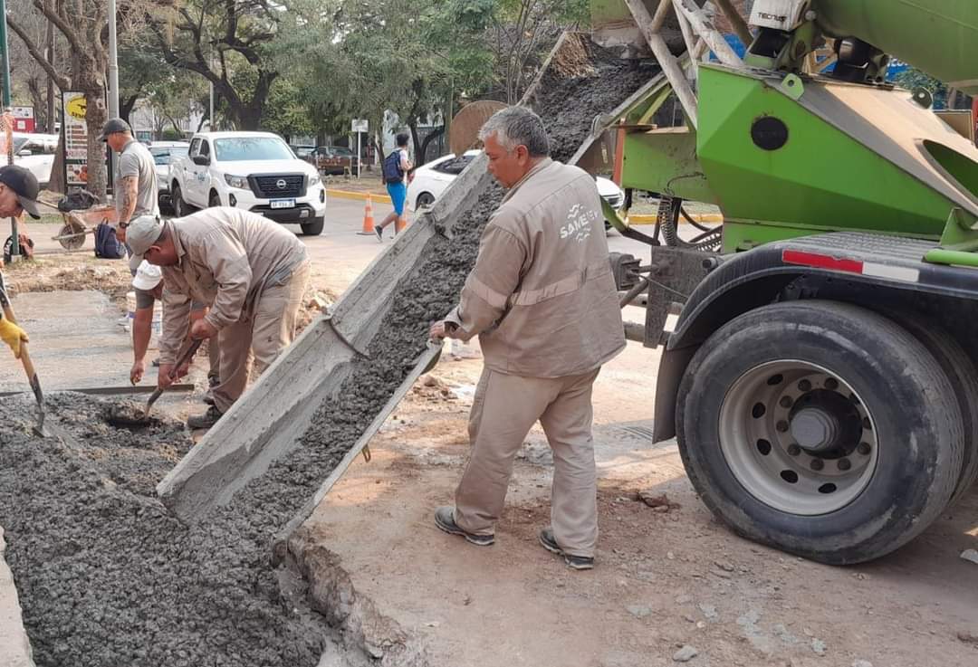 La empresa Sameep continúa llevando adelante trabajos preliminares de suelo y hormigonado sobre las roturas de pavimento generados por trabajos en distintos puntos del Área Metropolitana.