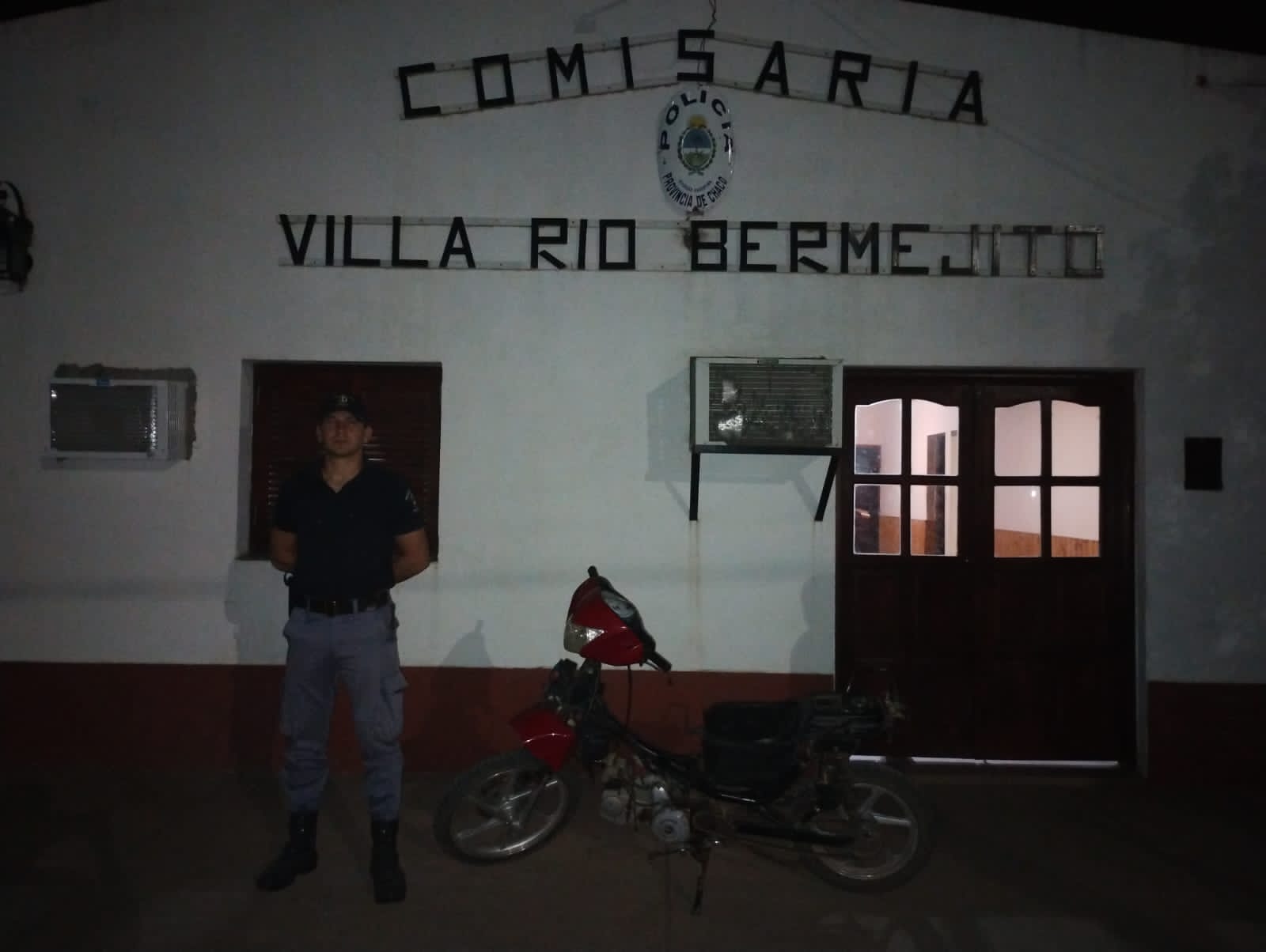 VILLA RIO BERMEJITO: POLICIA LOCAL RECUPERA MOTOCICLETA ROBADA.