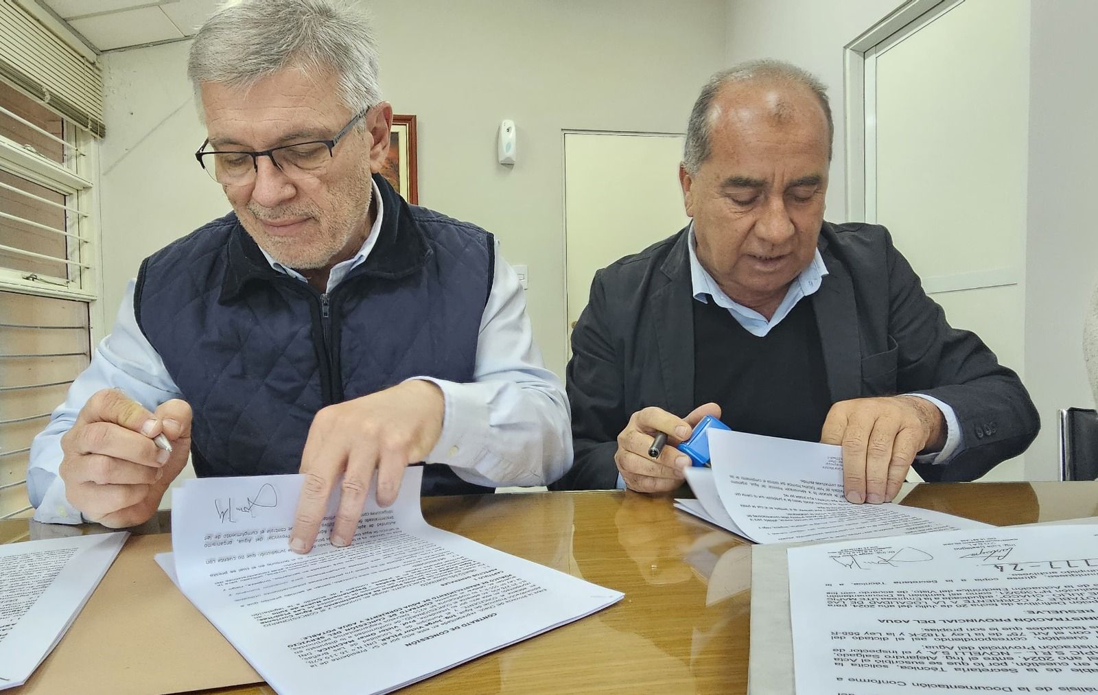 El presidente del organismo provincial, Jorge Pilar y el intendente VÃctor Omar Machuca, firmaron los documentos correspondientes por los cuales el Municipio operará la planta de agua y la red de distribución en Las Piedritas, con la “supervisión y mantenimiento que implica operar este tipo de obras, a cargo de la APAâ€, precisaron las autoridades.