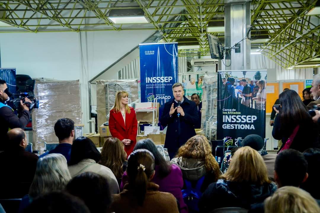 El gobernador Leandro Zdero entregó, esta tarde, junto a la presidente del Instituto de Seguridad Social Seguros y Préstamos (INSSSEP), Irene Dumrauf, ayudas técnicas de prótesis concretada en la sede de la Farmacia Social. De este modo, en el marco del Programa INSSSEP Gestiona, a través del Área de Prótesis, fueron beneficiados 40 afiliados activos y pasivos, con elementos ortopédicos como camas, sillas, colchones antiescaras, y andadores, entre otros).