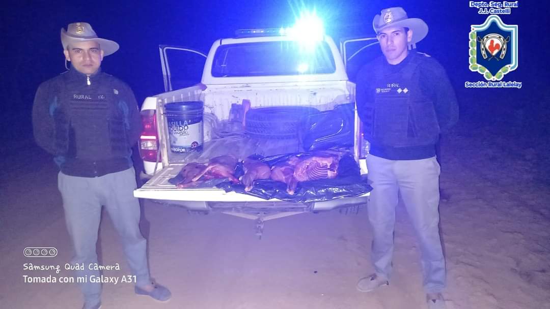 Fuertes operativos en caminos vecinales y accesos a la ciudad con SECUESTRO de madera - guinche, (02) dos camionetas, ( 250 kilogramos de carne vacuna), (04) cuatro animales silvestres abatidos - armas de fuego), (02) personas detenidas y (04) animales equinos sueltos en ruta. *FAENA CLANDESTINA:* (Secuestro 250 kilogramos carne vacuna - una camioneta - y dos personas detenidas). Una comitiva policial hallaba control fijo en camino vecinal acceso ciudad de Castelli, interceptó paso (01) una camioneta, marca pugeot, guiada por masculino R.R.J Ddo. Quinta 71 - Castelli, quien transportaba sector caja carga aproximadamnete 250 kilogramos de carne vacuna " Sin ducumental - sin cadena frío e Higiene alguna", seguidamente uniformados ubicaron lugar de faena paraje Mala, donde munido orden judicial, se realizo allanamiento e inspección del lugar faena, logrando SECUESTRO cuero vacuno, aparejo, cuchillos todos interes para causa. Interviniente Juzgado Faltas Local. SECUESTRO MADERA: (Aproximadamente 31.000 kgs rollos quebracho colorado y un guinche). Personal realizaba recorrida en Paraje Cabeza Buey - Bermejito, intercpetan paso (01) un camión, marca fiat, teniendo enganchado acoplado ambos cargados con rollos quebracho colorado, conducido por P.F.A Ddo. Planta urbana Pampa del Indio, "SIN GUIA DE TRANSPORTE DE PRODUCTO FORESTAL QUE AMPARE PRECEDENCIA Y TRASLADO CARGA", asimismo se controlo paso medio movilidad utilizado para dicha carga (01) un guinche sin documental alguna, tal sentido se procedió SECUESTRO totalidad madera incautada y rodado tipo guinche. CAZA FURTIVA: (Secuestro de cinco animales silvestres abatidos y armas de fuego). Asimismo distintas unidades operativas moviles, lograron intercpetar dos vehiculos, con ocupantes masculinos, quienes hallaban practicando caza futiva en horario nocturno luz artificial, tal sentido fueron incautados tres liebres - dos guazunchos abatidos, armas fuegos, reflector y ocupantes fueron notificados actuaciones rigor. CAMIONETA ADULTERADA Tambien otro grupo trabajo intercpeto paso (01) una camioneta, marca ford F 100, guiado por ciudadano G E. R. Ddo Pje Pampa Argentina, rodado que presentaba anomalias en su numeración motor - chasis, procediendo secuestro vehiculo y en tanto situación legal conductor quedo disposición fiscalia turno. ANIMALES SUELTOS (Secuestro 4 cuatro animales equinos sueltos en ruta). Teniendo en cuenta requerimiento realizado por transeúntes, fue activado un servicio de patrullaje en sector distintas rutas, fines prevenir accidentes transitos, donde los uniformados lograron agarre y SECUESTRO de (04) animales equinos sueltos en sector ruta, todo ello con intervención juzgado Faltas.