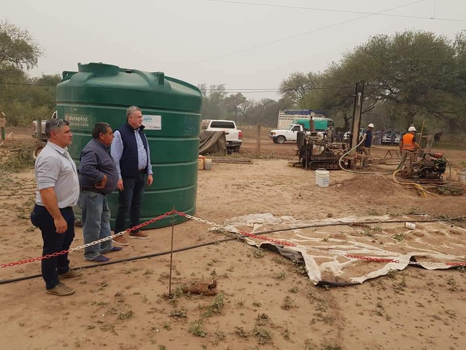 En el Paraje 4 de Febrero, en Miraflores, Chaco, se vive un momento clave e histórico. Con la presencia del Gobernador Leandro Zdero, este fin de semana, el vocal de la APA, Luis Castagno y Carlos Ferreyra, llevaron adelante una inspección acerca de esta obra, muy esperada, de perforación profunda. A una profundidad de 190 metros, se encuentra dicha obra y se calcula que el agua se encontrará a 210 metros, ideal para el consumo animal y también para la agricultura familiar.