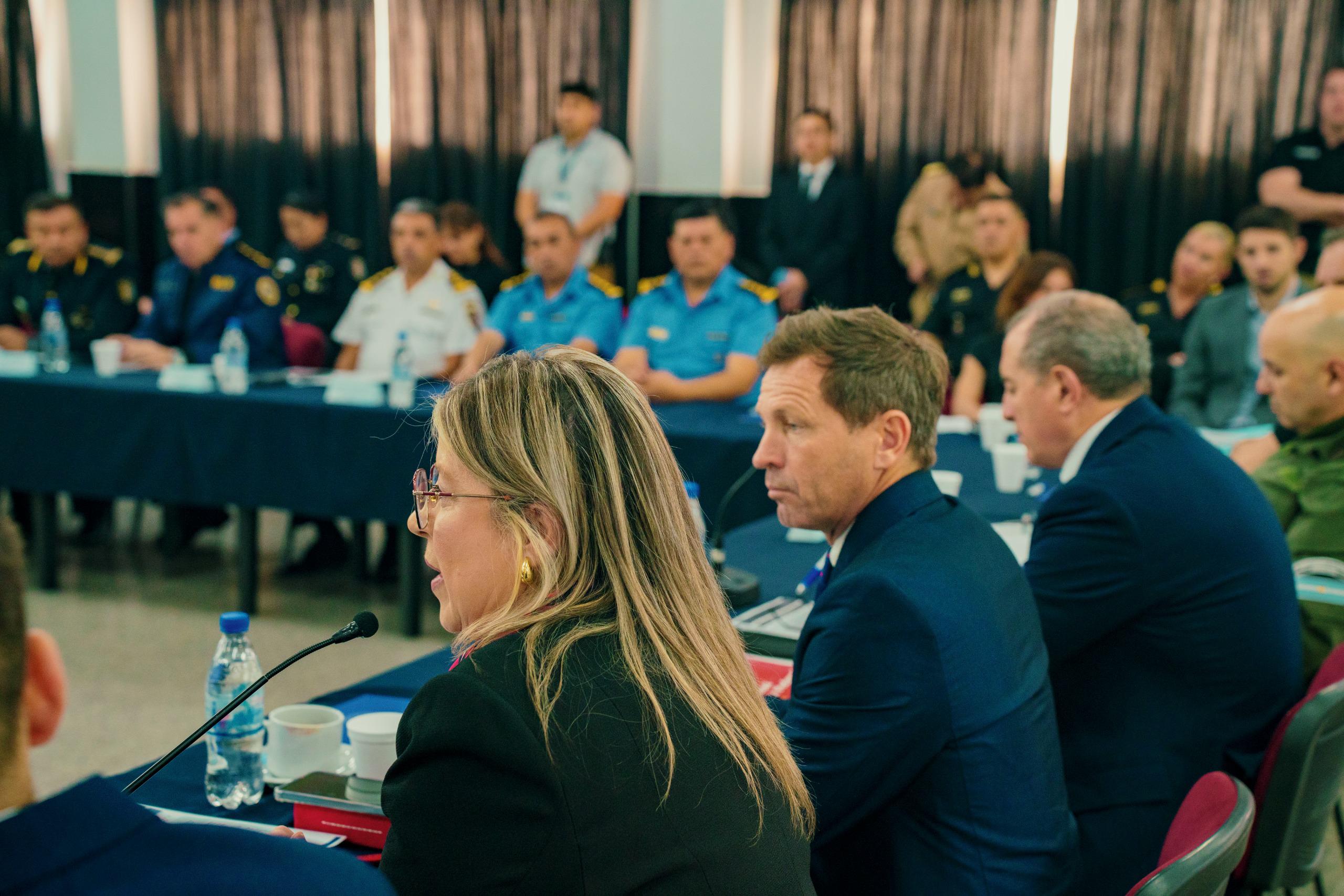 Es presidida por la señora Secretaria de Seguridad de la Nación Magister Alejandra Monte Oliva, acompañan el Licenciado Iván Velasco Secretario Ejecutivo del Consejo de Seguridad Interior y Dr. Fernando Acedo Secretario de Seguridad de la Provincia de Salta.
