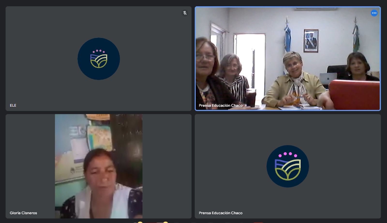 La ministra de Educación, Sofía Naidenoff, junto al gabinete educativo, se reunió este miércoles, de manera virtual, con la maestra rural Gloria Cisneros, personal único de la Escuela Primaria N° 793 del Paraje La Sara, jurisdicción de Taco Pozo, quien es candidata al premio Global Teacher Prize, que otorga la Fundación Varkey para reconocer a un docente extraordinario y comprometido qué haya alcanzado un impacto positivo inspirando a su escuela y comunidad.