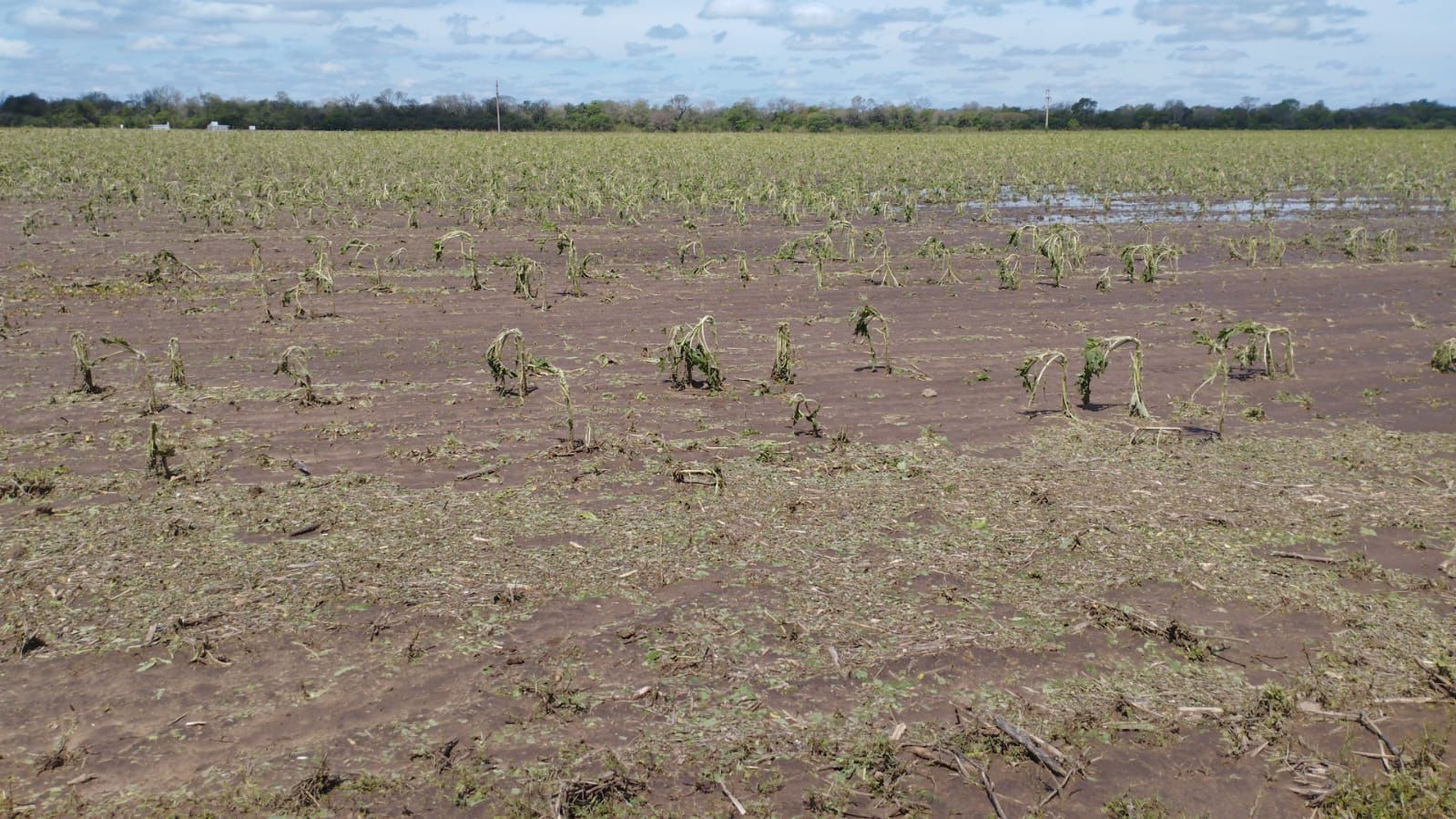 En base a la información recogida por los delegados del MPDES, en Hermoso Campo, Departamento 2 de Abril, el fenómeno climático ocasionó daños de distinta magnitud en sembradÃos de girasol pertenecientes a dos productores, abarcando una superficie total de 436 hectáreas.