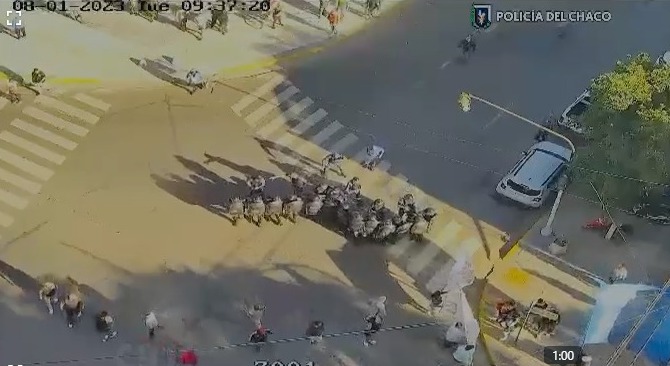 La ministra de Seguridad y Justicia, Gloria Zalazar brindó detalles sobre los hechos ocurridos esta mañana, cuando la Policía del Chaco despejó un corte de tránsito en el microcentro de Resistencia. La Policía del Chaco despejó el corte de tránsito realizado por movimientos sociales este martes por la mañana en el microcentro de Resistencia. El hecho tuvo lugar a las 9:30 en la esquina de las calles Hipólito Yrigoyen y General Güemes, donde unas 100 personas integrantes de distintos movimientos sociales interrumpieron el tránsito. La funcionaria destacó el accionar profesional de la Policía de la provincia “conforme a la Ley 2399-J, que establece los protocolos de intervención en manifestaciones. La Policía actuó en función de preservar la seguridad de los comerciantes y transeúntes”. Los manifestantes se dirigieron luego hacia Casa de Gobierno con pancartas y elementos de percusión, según consta en el parte policial y fueron interceptados por personal de la División Infantería en Hipólito Irigoyen 50, quienes solicitaron a los manifestantes que se suban a la vereda. Los integrantes de movimientos sociales se negaron, lo que motivó el uso de la fuerza mediante la formación lineal de efectivos policiales para así evitar que avancen hacia Casa de Gobierno. Como respuesta, los manifestantes se tornaron violentos hacia el personal policial arrojando todo tipo de elementos contundentes. Los efectivos de Infantería utilizaron elementos químicos para disuadir la concentración y despejar el tránsito. Además, detuvieron a tres personas mayores de edad. Por otra parte, producto de la violencia ejercida por manifestantes, dos escudos resultaron con roturas y cuatro efectivos policiales poseen heridas leves que fueron atendidas por personal médico. “No vamos a permitir acciones violentas de personas que atentan contra la ciudadanía alterando el orden y la paz social mediante un corte del tránsito”, aseguró la ministra Zalazar. www.am-impenetrable.com.ar