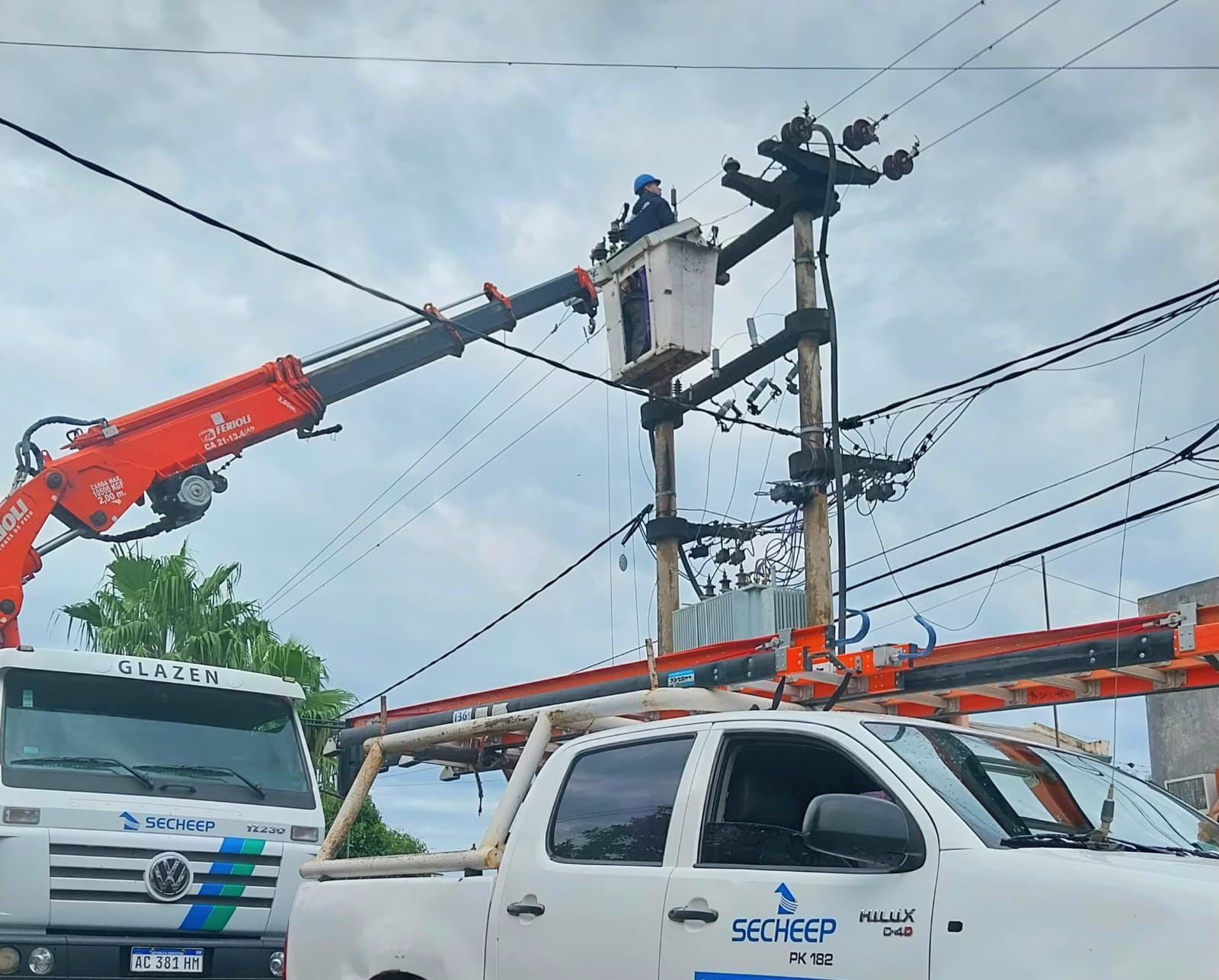 Multiplicando la cantidad de cuadrillas y operarios, desde la tarde del domingo, SECHEEP intensificó los trabajos operativos para restablecer el servicio del suministro eléctrico afectado por el temporal en diferentes zonas de la provincia.