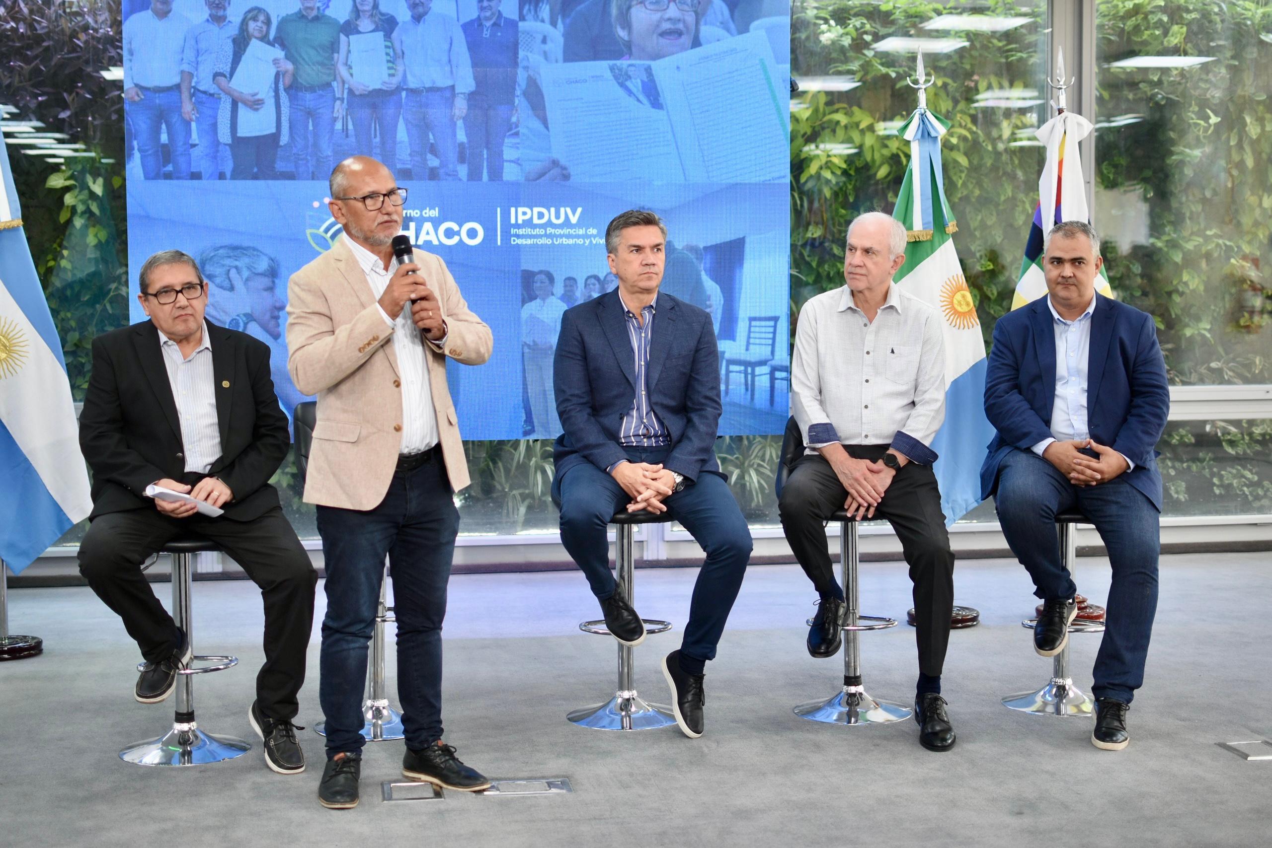 -Algunos esperaron por más de 40 años- “Estamos para cumplir con la responsabilidad del Estado de ser un facilitador del esfuerzo que cada ciudadano ha puesto para tener su propia vivienda”, dijo el jefe del Ejecutivo chaqueño. “Estamos cumpliendo el sueño de muchas familias que esperaron más de 40 años para tener el título de su vivienda”, aseguró. El primer mandatario provincial destacó el rol del Gobierno Provincial para brindar soluciones concretas para los chaqueños. En ese marco aseguró que el gobierno trabaja para agilizar la entrega de los títulos de propiedad a través de un programa que organiza y ordena la función del Ipduv. “El propósito es brindar certidumbre a las familias, de modo que puedan tener su propio techo y sentir seguridad. Esto les permitiría heredar la propiedad a sus familiares y hacer inversiones, otorgándoles esa tranquilidad de que su vivienda les pertenece, fruto del esfuerzo realizado durante mucho tiempo”, sostuvo. En este punto recordó que en su paso por la Legislatura provincial escuchó los reclamos de la gente por la certeza respecto a su propia casa. “Consideré que era una decisión política crucial facilitar este proceso y brindar una respuesta concreta a través del trabajo del Instituto de Vivienda”, indicó y lamentó que muchas familias hayan tenido que esperar más de 44 años para recibir el título de propiedad de su vivienda. Zdero resaltó también la importancia de la articulación con los gobiernos locales y ratificó el compromiso de seguir trabajando junto al intendente Roy Nikisch para que más familias tengan la certidumbre de su techo propio y seguir brindando más soluciones para la gente. “Tanto el Gobierno Provincial como la Municipalidad de Resistencia, se han puesto espalda con espalda para solucionar los problemas de los resistencianos”, indicó. ”Nos hemos puesto a trabajar juntos para recuperar las calles, los espacios públicos y solucionar esos problemas cotidianos de la gente. Sabemos de la responsabilidad que nos ha otorgado el pueblo del Chaco y, en particular, los resistencianos. Y estamos comprometidos a honrar esa confianza haciendo las cosas bien”, remarcó. Finalmente el gobernador les deseo a los chaqueños y resistencianos, en particular, un 2025 lleno de prosperidad y felicidad. Detalle de la entrega: Se entregaron títulos de propiedad a familias de los barrios Santa Inés; San Cayetano, España, Villa Rio Negro, Provincias Unidas, Barrio Güiraldes, LLaponagat e Hipólito Irigoyen. En este acto también reciben sus Títulos de Propiedad los vecinos de los Barrios: Barrio SEJCH, Barrio APOCH, Barrio 347 Viviendas, Barrio COPERVI, Barrio Intendente Borrini, Barrio San Miguel, Barrio SOESGYPE, Barrio Barberán, Barrio Viales, Barrio Carpincho Macho, Barrio Golf Club, Barrio Cosecha, Barrio UDOCHA, Barrio UOM, Barrio Cosmetólogo, Barrio El Changuito, Barrio Ítalo Argentino, Barrio 431 Viviendas, Barrio Aledañas a COPERVI, Barrio Judiciales, Barrio 150 Viviendas Ex Municipales, Barrio MUPESA, Barrio Viajantes, Barrio Mujeres Argentinas, Torre APOCH y Torres Sarmiento. Nikisch: “Este esfuerzo y trabajo conjunto va a seguir dando frutos” El intendente de Resistencia Roy Nikisch destacó el trabajo colaborativo con el Gobierno Provincial para avanzar en la solución de los problemas de los vecinos de Resistencia. “Hemos colaborado intensamente con el Instituto de la Vivienda para regularizar muchas situaciones. Lamentablemente, existen viviendas construidas por la Administración Provincial del Agua durante épocas de emergencia hídrica, cuyos trámites y documentos se encuentran extraviados, ocultos, sin que haya una voluntad administrativa por resolverlos”, detalló. En este contexto, Roy Nikisch aseguró que el 2025 volverá a encontrar trabajando juntos a la Municipalidad de Resistencia con el Gobierno Provincial. “Este esfuerzo y el trabajo conjunto va a seguir dando frutos. Tenemos que dar desde la política la respuesta que los ciudadanos de Chaco necesitamos”, dijo. Berecoechea: “Solución a problemas que venían desde hace mucho tiempo” "Estamos honrando el compromiso que el gobernador nos encomendó al inicio de su gestión, de comenzar a dar solución a los problemas que se arrastraban desde hace mucho tiempo como el otorgamiento de los títulos de propiedad a familias de Resistencia y de cada rincón del Chaco", resumió el presidente del Instituto Provincial de Desarrollo Urbano y Vivienda (Ipduv), Fernando Berecoechea. Acompañaron al gobernador Zdero en el acto, el presidente del IPDUV, Fernando Berecoechea; los vocales del organismo, Diego Gutiérrez y Daniel Monti; la subsecretaria de Asuntos Registrales, Mercedes Marinich y familias beneficiarias.
