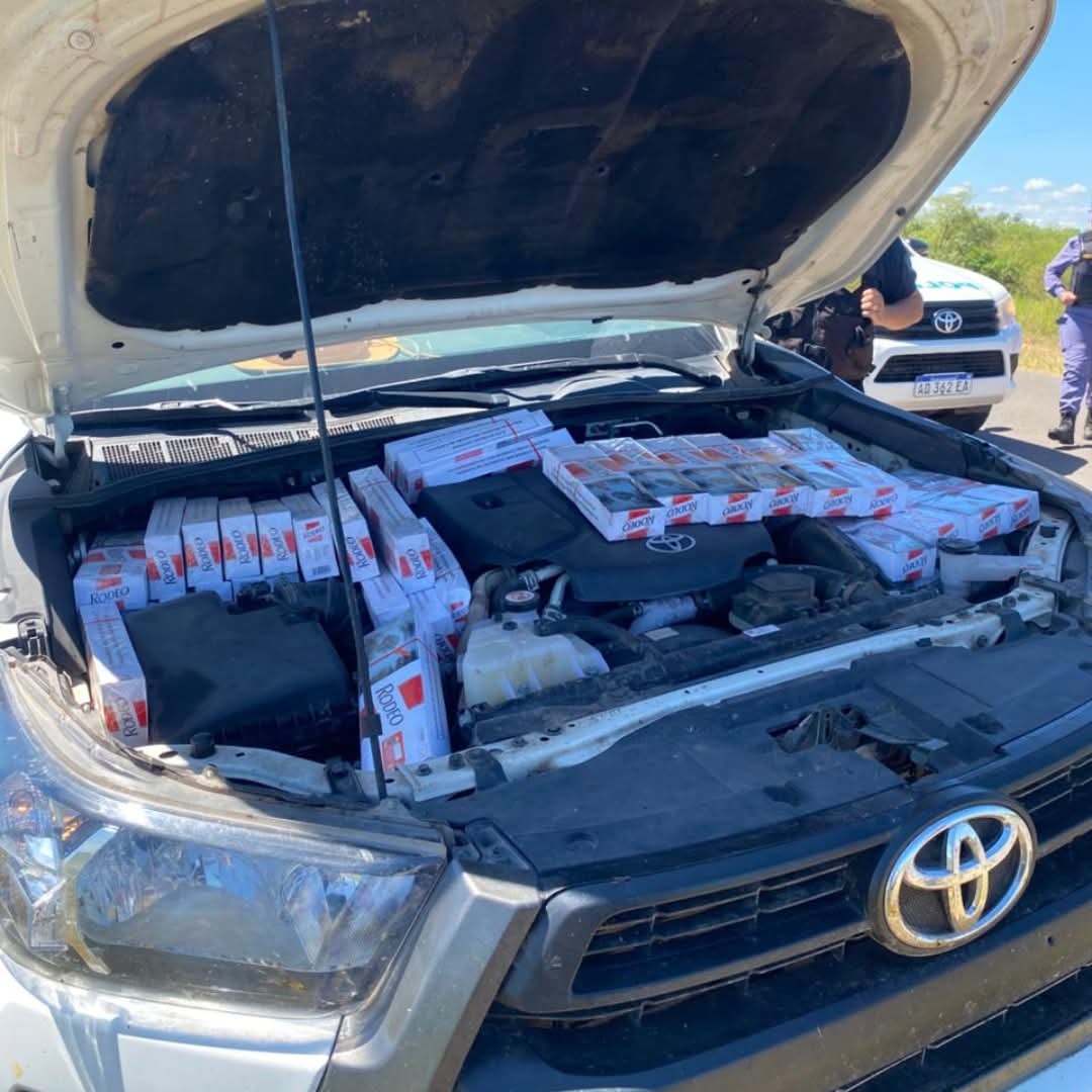 El conductor de la camioneta que pudo escapar, evadió constantemente los controles policiales e intentó atropellar a los agentes. El vehículo estaba repleto de cartones de contrabando, ocultos hasta en la zona del motor.
