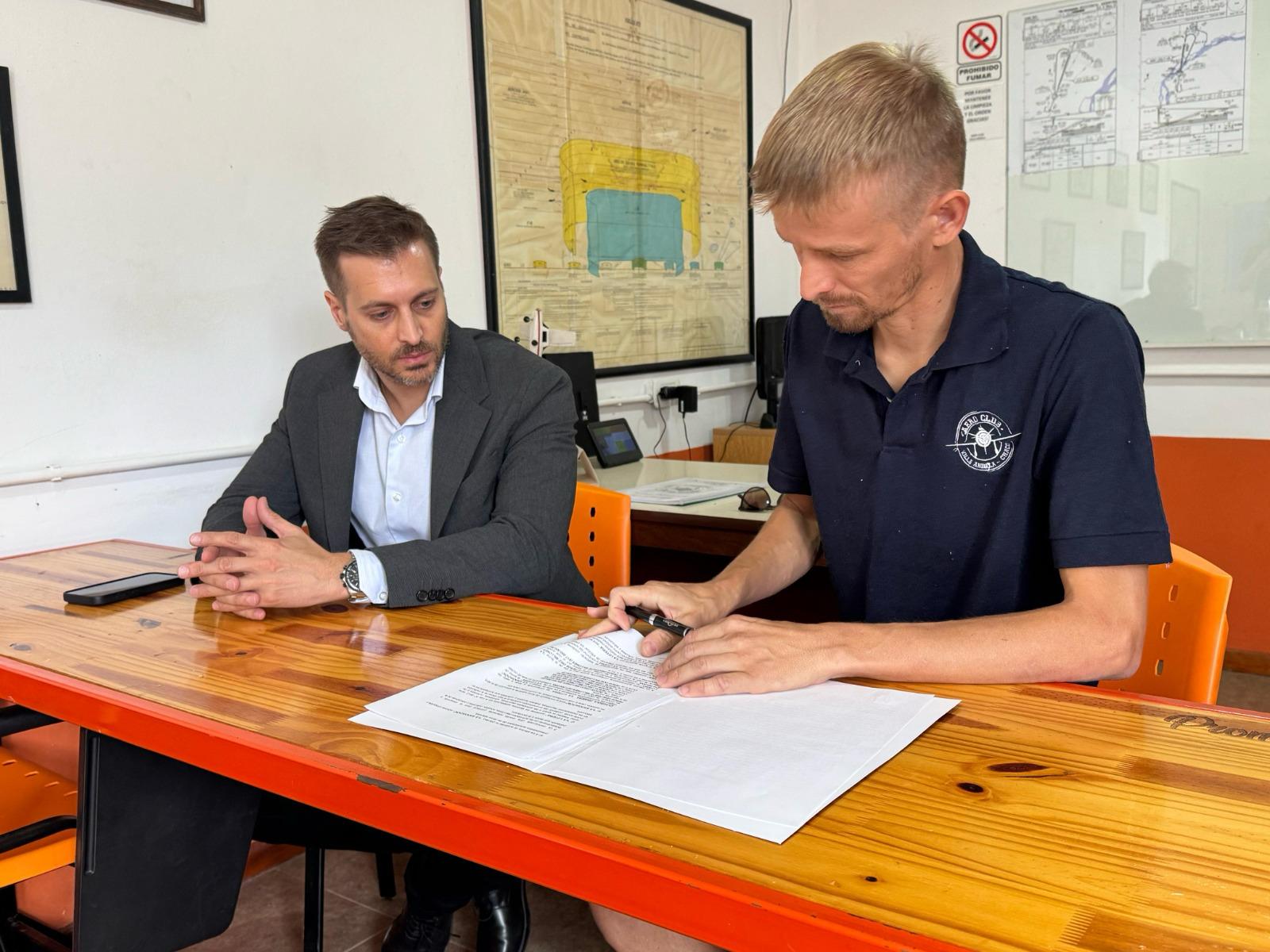 El acuerdo establece la construcción de un albergue que contará con habitaciones, cocina, duchas y núcleo sanitario. Esta obra beneficiará a los alumnos que asisten en el lugar que realizan la escuela de vuelo, como asà también a los pilotos de la provincia.