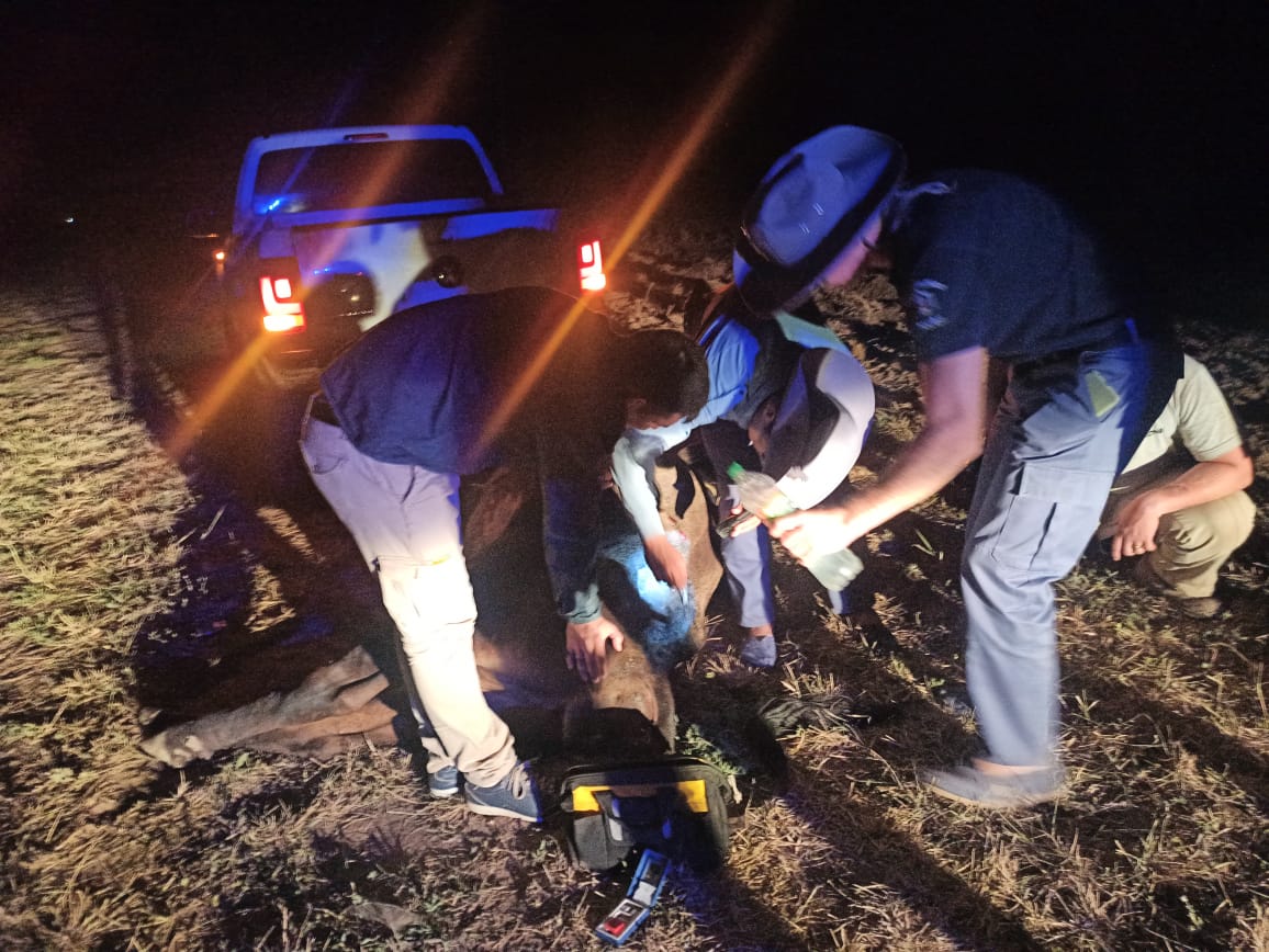 Se hizo presente personal del Departamento Seguridad Rural junto al Médico Veterinario, quienes se abocaron a sus tareas especÃficas y procedieron a la extracción de marca y señal del animal. Se realizó acta de constatación en el lugar.