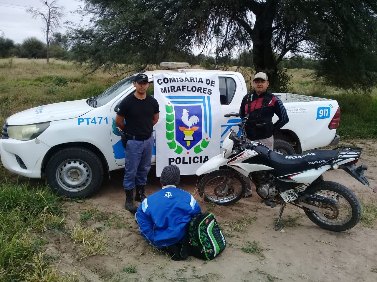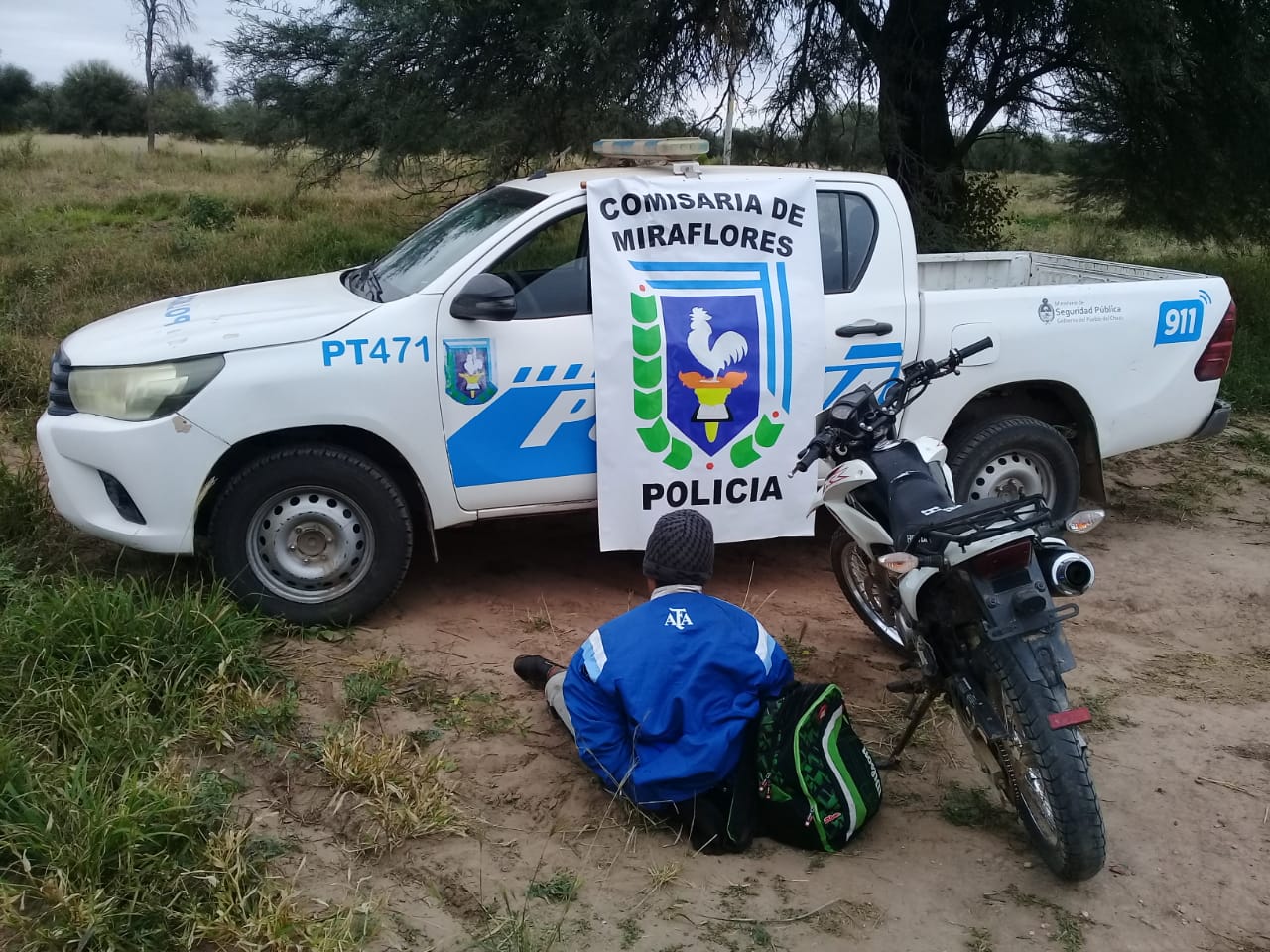 Siendo las 13:00 horas aproximadamente, personal destacado de la Comisaria Miraflores, adquiere información confidencial, donde una persona conocida como F. D. estaría trasladando una motocicleta HONDA, modelo XR, 125cc, color blanca, la cual aparentemente fue sustraída desde la Localidad de Misión Nueva Pompeya con destino Ciudad de Juan José Castelli, tal sentido los uniformados implementaron control fijo sobre Ruta Provincial N° 09, donde horas 14:00 aprox. tras breve persecución , logran interceptar motocicleta antes mencionada, guiada por ciudadano F. S. D. Seguidamente se pudo establecer que dicha motocicleta posee pedido de SECUESTRO ACTIVO por parte de la Comisaria de Misión Nueva Pompeya en causa "GÓMEZ DANTE RAFAEL S/DENUNCIA P/SUP. ROBO". En tal sentido se puso en conocimiento de la Fiscalía Multifueros de Pompeya a/c Dr. MORALES BORDÓN, quien interiorizado dispuso SECUESTRO de mencionado Motovehículo y Aprehensión referido D. Luego dichas actuaciones con detenido y secuestro sean remitidas a la Comisaria Misión Nueva Pompeya para proseguir con las diligencias de rigor.