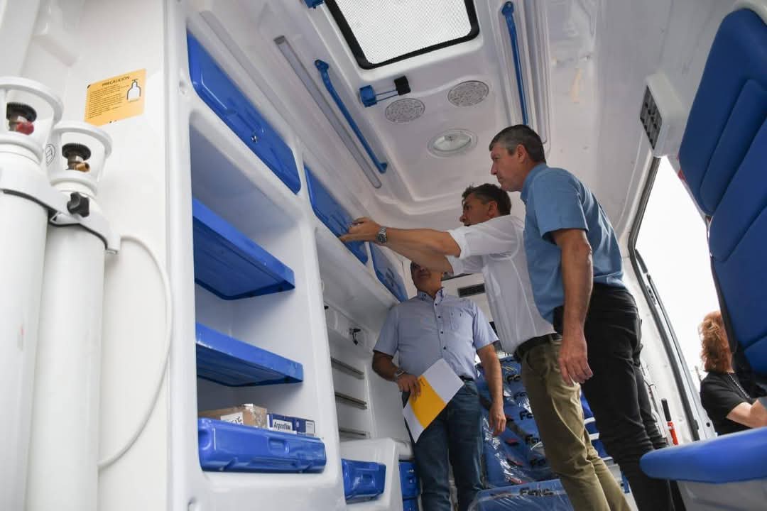 Este vehículo fue equipado con todo lo necesario para una unidad de Traslado de Mediana Complejidad, para rescate en accidentes y rescates en la vía pública además de traslados hacia el hospital del Bicentenario, en Juan José Castelli. Referido a esto el gobernador explicó que la entrega “responde a un plan estratégico en materias de salud que venimos trabajando y que tiene que ver con solucionar los recursos humanos, tiene que ver con insumos y reforzar la Red Sanitaria”. Por su parte, el ministro de Salud Rodríguez, enfatizó que “todas estas unidades fueron compradas con recursos propios del Estado provincial. Hace 16 meses hemos incorporado 60 vehículos para el Ministerio de Salud, lo cual para nosotros es un esfuerzo enorme de los chaqueños”. Acompañó la entrega de ambulancia, la subsecretaria de Articulación Sanitaria, Dra. Mariela Mercadín, la directora del nosocomio local, odontóloga Ivana Breard y el intendente de la localidad, Omar Reis.