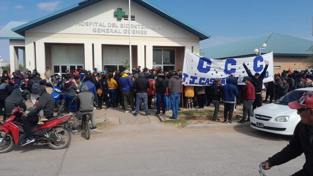 Los trabajadores manifestaron su malestar por los reiterados hechos de inseguridad que acontecieron en las últimas semanas en las instalaciones del nosocomio. En la mañana de este jueves, trabajadores del Hospital del Bicentenario “General Güemes” de Juan José Castelli llevaron adelante una medida de fuerza, acompañados por integrantes de la Corriente Clasista y Combativa (C.C.C.), en la que manifestaron su malestar por los reiterados hechos de inseguridad que acontecieron en las últimas semanas en las instalaciones del nosocomio. Tras las primeras horas de protesta, referentes de los trabajadores fueron recibidos por el director del Hospital, Félix Ruiz y, en diálogo exclusivo con NOVA, la referente Sandra Ayarde señaló: “Vamos a continuar con la medida, luego iremos acordando y poniendo bien los puntos de cómo vamos a seguir a partir de esta reunión”. A lo que agregó: “El director Félix Ruiz se comprometió el martes a hablar con los medios para ver que se puede hacer con todo esto, para saber de dónde conseguimos las respuestas, porque es impresionante la inseguridad que estamos sufriendo nosotros como comunidad sanitaria”. En detalle, sobre el encuentro señaló: “Tuvimos una reunión de palabra, pero anteriormente elevamos varias notas, porque esto viene desde hace un tiempo y la de este jueves fue nuestra primer medida de movilización”. Para finalizar, manifestó que no descarta otras medidas de fuerza, ya que quedarán a la espera de articular medidas y respuestas con las autoridades que correspondan en la temática. (Foto: NOVA)