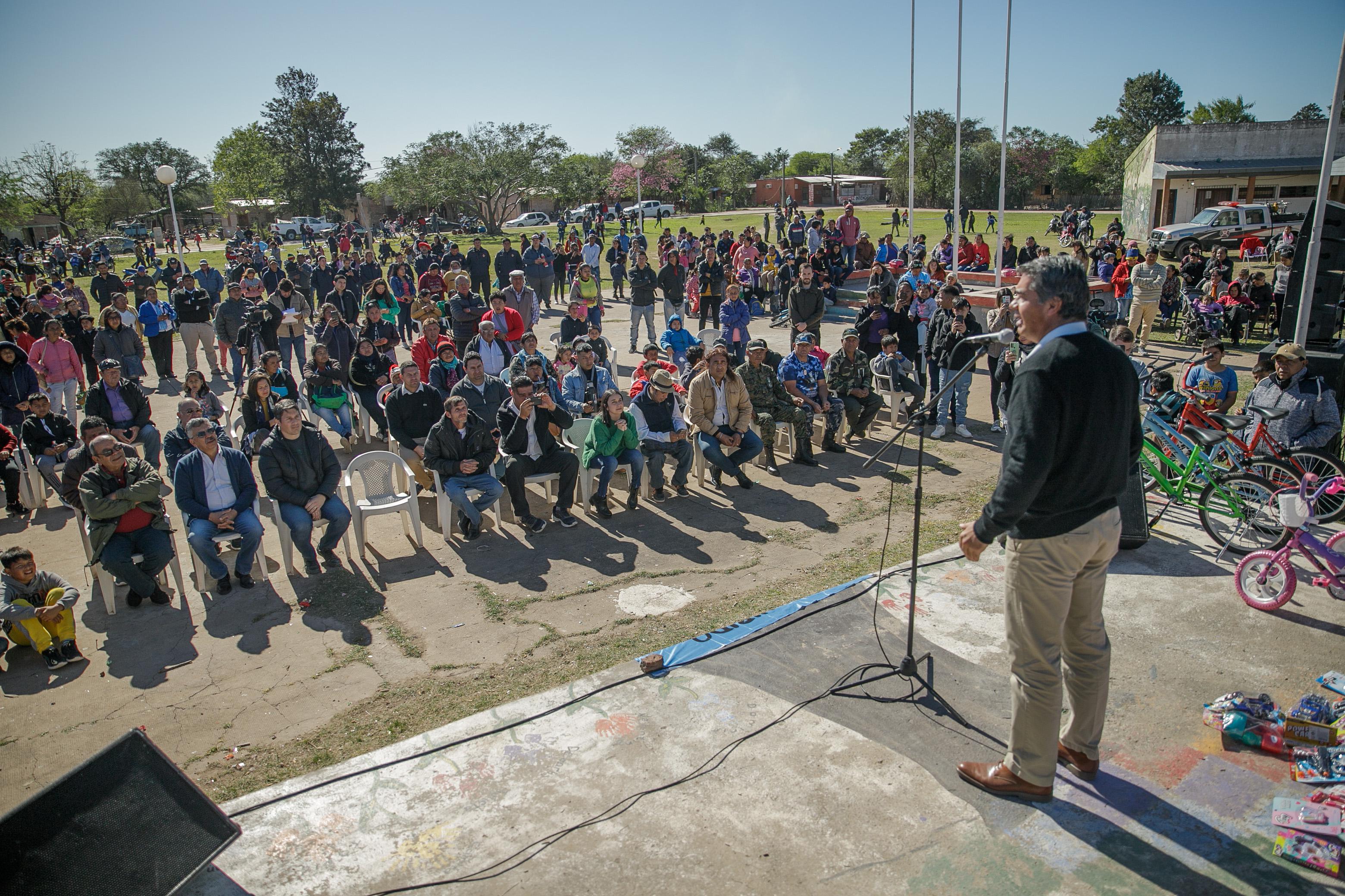 El mandatario puso en valor el crecimiento del flamante municipio, que el próximo 17 de septiembre elegirá por primera vez intendente: la pavimentación de la ruta de acceso, la escuela Florencio Tenev, el jardín de infantes, el anexo de la escuela 87, el hospital, electrificación rural, entre otros. “Tenemos que garantizar con el nuevo acueducto, la provisión de agua para la población, que es el gran objetivo que tenemos en el próximo mandato constitucional”, dijo Capitanich, y aseguró: “todos ustedes saben que pueden contar conmigo, han contado siempre, lo contarán ahora, lo contarán en los próximos mandatos, porque seguiremos construyendo desde Colonia Aborigen todas las reivindicaciones que sean necesarias”. Samuel Ortega, hijo de un ex combatiente, expresó que la idea de la jornada nace a partir de la iniciativa de que los niños y niñas, además de recibir sus regalos, tomen contacto con veteranos de guerra y puedan compartir con ellos. Como parte de las actividades hubo un especial homenaje a Juan Chico, quien fue el fundador de la Fundación Napalpí, además de historiador, escritor, investigador, productor de documentales y docente de la comunidad.