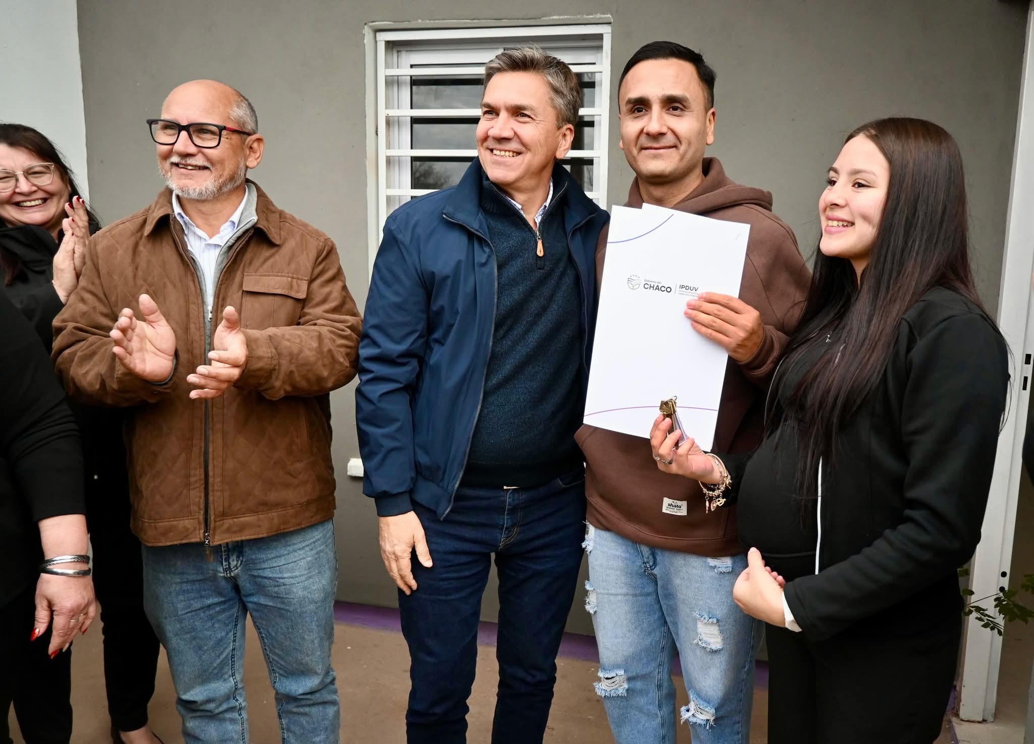 El gobernador Leandro Zdero entregó, este lunes, junto al presidente del Instituto Provincial de la Vivienda (Ipduv) Fernando Berecoechea, viviendas a familias de Taco Pozo. “Estamos cumpliendo el sueño de familias que esperaban su casa desde hace muchos años; seguimos trabajando para transformar la realidad y cumplir sueños”, apuntó.