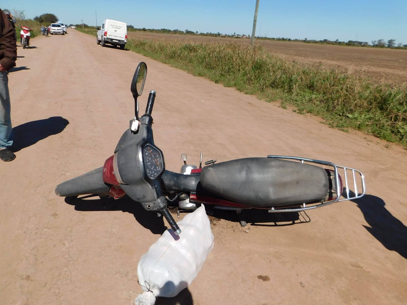 Durante este lunes 25/08, a las 10.30 ha aproximado, en el camino Vecinal Colonia Velez Sarfield - de la Localidad de Tres Isletas, se hace, presente personal policial y corrobora veracidad hecho, observandose un masculino junto a su motocicleta, razones se trata establecer cayo de su rodado, siendo el conductor Loreto Cena (63), ddo. Lote 15 Lalelay esta Localidad, quién esta recostado junto a motocicleta marca Honda, modelo Wave 110cc, color roja con dominio N° 723JFN.