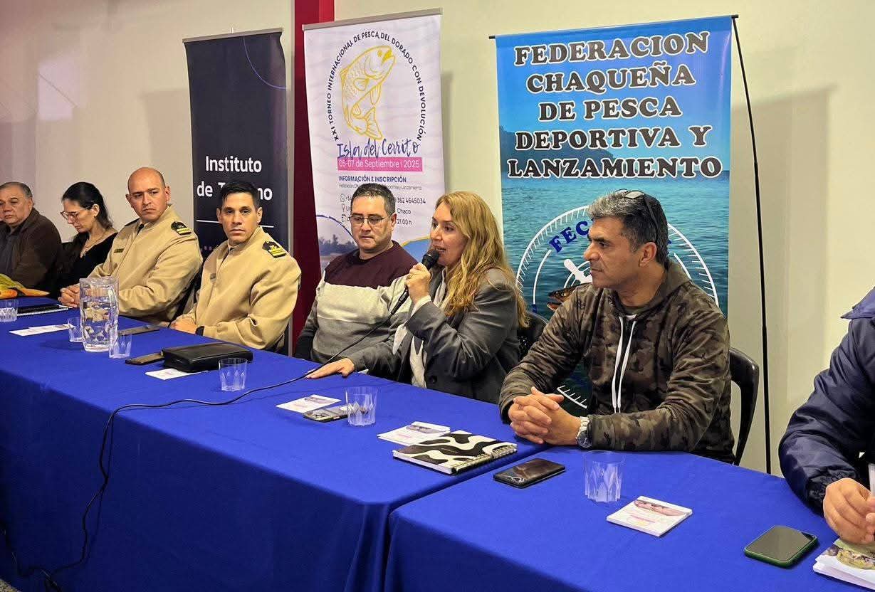 Durante el encuentro se anunció la conformación del equipo de fiscales y timoneles, encargados de garantizar la transparencia y el correcto desarrollo del certamen. Asimismo, se presentó el reglamento oficial y los protocolos de manipulación del dorado, elaborados por la bióloga Natalia Silva, de la Universidad Nacional del Nordeste (UNNE), con el propósito de asegurar la preservación de esta especie emblemática del Paraná. Autoridades de la Prefectura Naval Argentina y de la Brigada Operativa Ambiental (BOA) detallaron además las medidas de seguridad y los dispositivos de control ambiental que estarán activos durante la competencia, reafirmando el carácter sostenible del evento. La presidente del Instituto de Turismo del Chaco, Verónica Mazzaroli, destacó el rol del torneo como política de Estado: “El Torneo Internacional de Pesca del Dorado con Devolución es una herramienta estratégica para potenciar el turismo en la Isla del Cerrito. Nos permite visibilizar a Chaco en el mapa nacional e internacional, proyectando un modelo de turismo sostenible que cuida nuestros recursos naturales, genera empleo y beneficia directamente a las comunidades locales. En esta línea, el gobernador Leandro Zdero impulsa al turismo como uno de los ejes de desarrollo provincial, apostando no solo a la organización de eventos de jerarquía, sino también a la inversión en infraestructura turística que fortalezca la experiencia de visitantes y residentes. En la Isla del Cerrito se concretan obras claves como la bajada de lanchas y una oficina de información turística, mejoras que consolidan al destino como punto de referencia en el nordeste argentino y que también son disfrutadas por la comunidad local. De esta manera, el Gobierno del Chaco reafirma que la pesca deportiva con devolución no es solamente una competencia, sino una estrategia integral que combina conservación ambiental, turismo responsable y desarrollo económico. Con acciones concretas y una mirada de futuro, la provincia afianza su posicionamiento como destino de naturaleza y deporte, poniendo a la Isla del Cerrito en el centro de la escena turística del país.