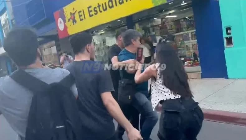 La peatonal Junín fue escenario de enfrentamientos entre militantes y la caminata de La Libertad Avanza terminó interrumpida. Hubo agresiones a periodistas, dos personas detenidas y tres policías lesionados.