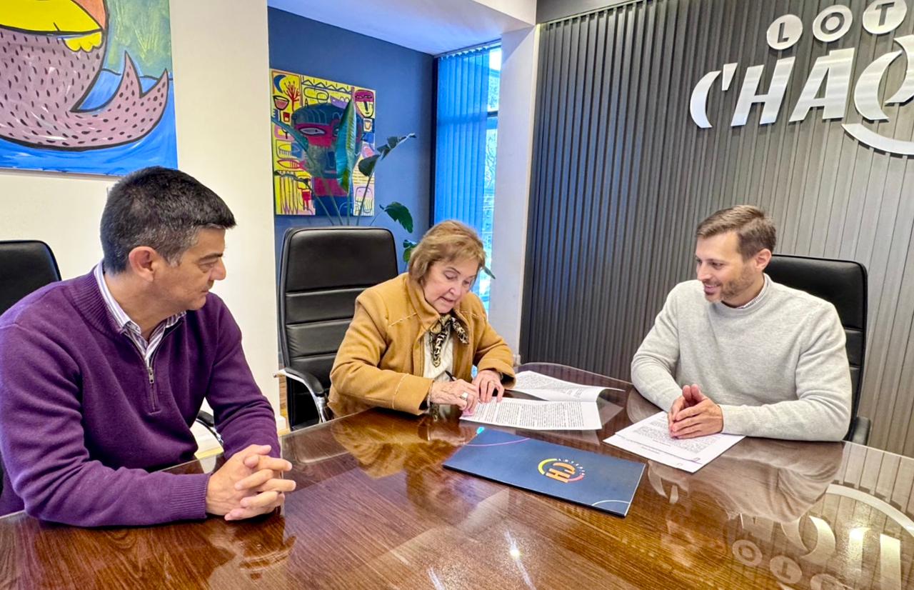 El presidente de Lotería Chaqueña, Lucas Apud Masín, junto al vocal oficial Juan Chaussivert, firmaron un acuerdo con la U.E.G.P. N°22 “Nuestra Señora de Fátima” de Quitilipi para llevar adelante una importante obra de infraestructura.