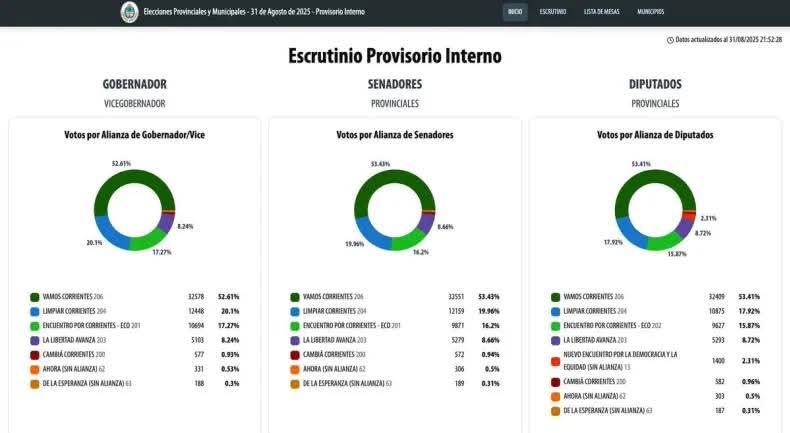PRIMEROS RESULTADOS EN CORRIENTES: GANA EL OFICIALISMO CON MÁS DEL 50%.