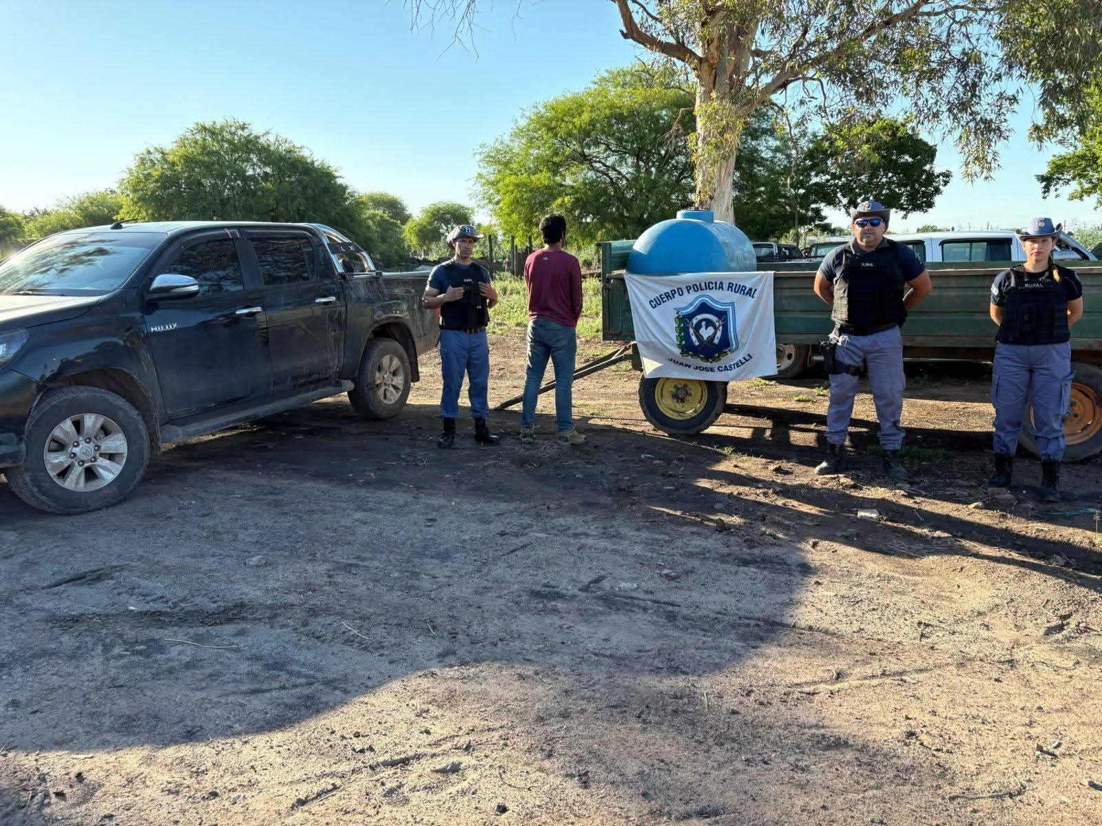 Ruraleros en un llanamiento, logran SECUESTRO de (01) un acoplado rural, UN TANQUE, una camioneta, y un masculino DETENIDO.