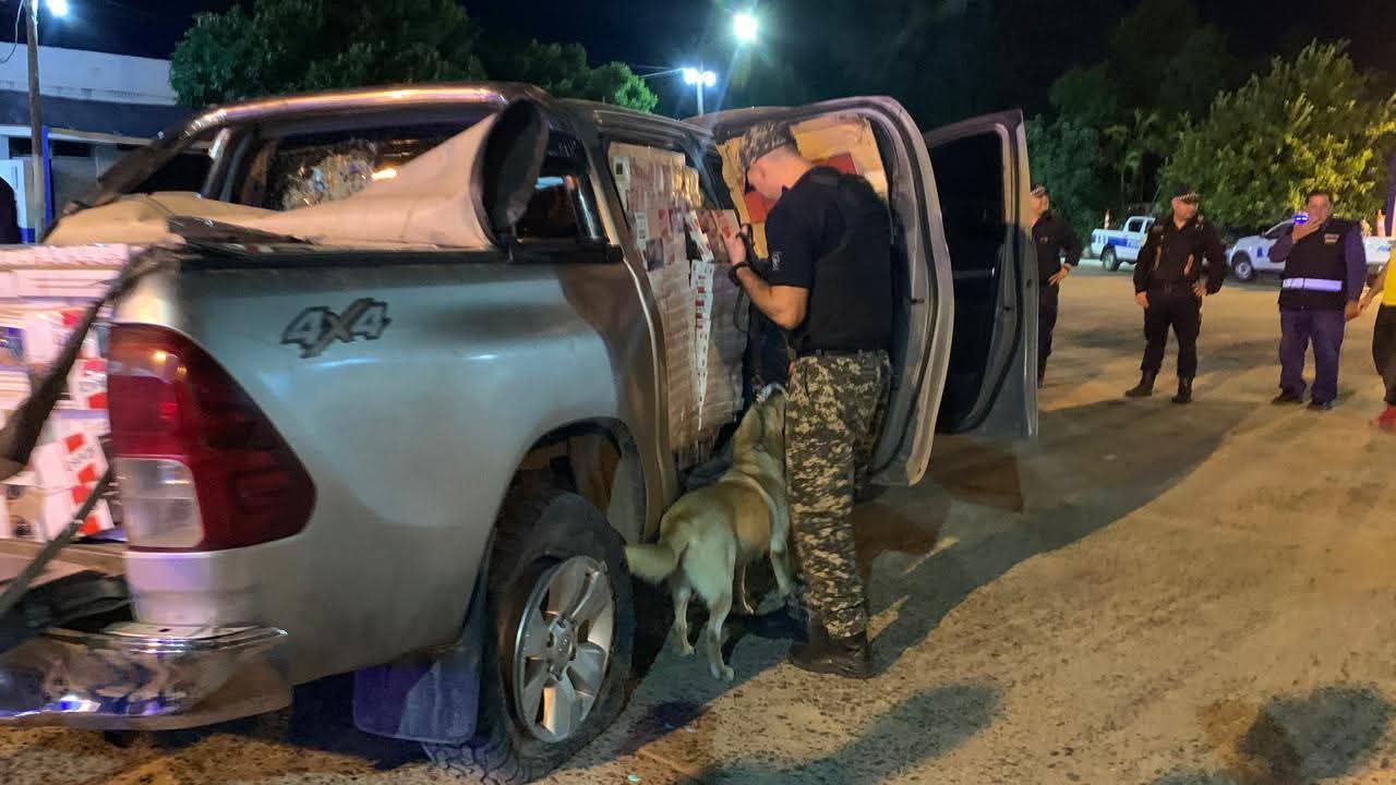 La huida finalizó cuando reventó un neumático y el conductor abandonó la camioneta para internarse en el monte. En el rodado se hallaron 58 cajas con 2.900 cartones de cigarrillos Rodeos sin aval aduanero, por lo que la Fiscalía Federal dispuso el secuestro del vehículo y la mercadería. Además, se constató que la camioneta tenía pedido de secuestro por supuesto robo y patentes pertenecientes a otro vehículo de Formosa, instruyéndose actuaciones judiciales con intervención del Juzgado Federal.