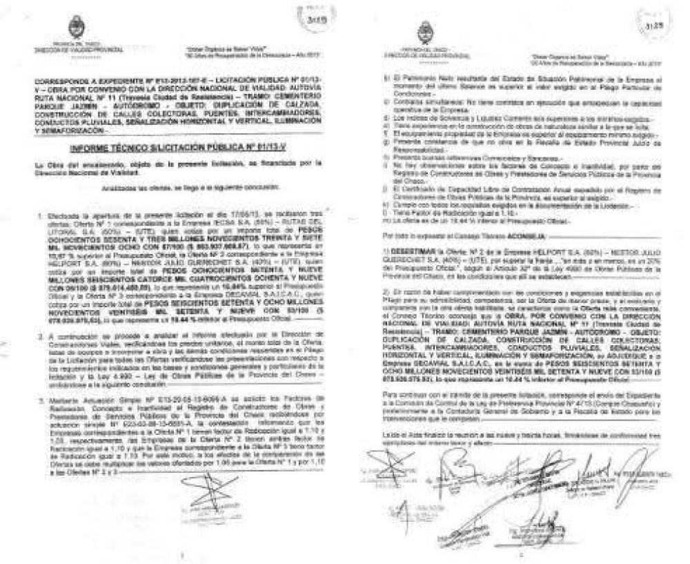 “No se puede pasar por ahí”, dice un constructor que descansa sobre su retroexcavadora. “Pero no hay ningún cartel que me diga por donde ir”, responde el conductor del automóvil. Así se circula por el acceso más importante a la ciudad de Resistencia, Chaco. Caballos, colectivos, bicicletas, ambulancias, remises y autos particulares. Ninguna señalización de obra. Camiones de carga que pasan por el medio de la ruta, motos que se cruzan y personas que trabajan llenas de polvo. Carriles separados por tachos, pozos, lomas de burro. Montañas de tierra, máquinas de construcción paradas, barrios carenciados por derecha y por izquierda, un supermercado Walmart y un hotel cuatro estrellas con casino. El acceso al aeropuerto más importante de la región y un solo cartel perdido que marca el “inicio de zona de obra” de la Autovía de la Ruta 11. La travesía urbana de la Ciudad de Resistencia En 2013, durante la segunda presidencia de Cristina Fernández y el segundo mandato del gobernador de la provincia del Chaco, Jorge Capitanich, se licitó el proyecto de la “Autovía de la Ruta 11”, ubicada en un importante acceso a la ciudad de Resistencia y conectada con Formosa, Corrientes y Paraguay. Esta Obra Pública consistía en la duplicación de la calzada de un tramo de 11 km entre el Cementerio Parque Jazmín y el Autódromo de Resistencia; la construcción de calles colectoras, puentes de hormigón en el cruce de las vías del Ferrocarril Belgrano sobre el Río Negro, conductos pluviales, señalización, iluminación e instalación de semáforos. Además de una remodelación total del acceso a la ciudad de Resistencia por Av. 25 de Mayo hasta Calle 12. Convenio Marco Licitación Publica 1/13 El proyecto fue un acuerdo entre Vialidad Provincial, encargada de la inspección y Vialidad Nacional, desde la supervisión y financiación, según especificaba el convenio marco de la obra. El jefe de presa del Distrito Nacional de Vialidad Chaco, Milton Brizzo, dijo que este acuerdo se realizó para “agilizar las cuestiones administrativas de la obra”, ya que el pliego y el llamado a licitación corrían a cuenta de la provincia, El presupuesto de la obra fue de $ 758.050.000. A la licitación se presentaron tres empresas: IECSA – RUTAS DEL LITORAL S.A (UTE) con un importe de $863.937.908,87, HELPORT S.A – NESTOR JULIO GUERECHET S.A (UTE) con $879.614.489,09 y la ganadora de la licitación DECAVIAL S.A.I.C.A.C, con una oferta de $678.926.079,53, un 10,44% por debajo del presupuesto oficial. ¿Qué es una licitación pública? “El fundamento de una licitación es que haya muchas ofertas y que el Estado se beneficie con la mejor”, explicó un asesor de empresas constructoras. Se publica en el diario el llamado y las que cumplan con las condiciones pueden presentarse. Cada oferta puede ser de hasta un 20% por arriba o por debajo del presupuesto oficial y puede ganar, incluso, la que tenga el segundo mejor precio, ya que se evalúa todo el historial de la empresa. Sin embargo, el asesor destacó: “El jefe del registro de constructores del Chaco repartía las obras. En cada licitación se presentaban tres propuestas, pero estaba todo arreglado de antemano. Una ofrecía un precio inferior al presupuesto y las otras dos iban al llamado solo para que hubiera competencia”. Licitación Publica 1/13 El proyecto sobre el cual se iba a licitar la ejecución de esta obra, según el archivo de los medios de comunicación locales, tenía datos y fechas confusas. La realidad es que el mismo le fue encomendado en el año 1999/2000 a la Consultoría Oscar G. Grimaux y Asociados durante la presidencia de Menem, siendo Ángel Rozas gobernador del Chaco. En el 2001 se licitaron dos obras a construirse en la provincia: una fue la Ruta Nacional N°16 (Nicolás Avellaneda) que unía a Resistencia con Corrientes, adjudicada a la UTE JCR & DECAVIAL. La otra era la Autovía de la Ruta 11, desde el Cementerio Parque Jazmín hasta el Autódromo, cuya licitación fue ganada por la empresa Sucesion Adelmo Biancalani. Créditos: Irina Repetto Sin embargo, en el 2002 se produjo la devaluación, cayó De la Rúa, se terminó el uno a uno y comenzó la escalada inflacionaria en el país. Fue necesario que en los contratos que tenían por objeto la ejecución de obras, se buscara una herramienta para mantener los precios según lo cotizado, autorizando el reajuste conforme el incremento de precios. Para esto se dictó el decreto 1295/02, que autorizó re determinar los precios de la Obra Pública según la inflación. “La empresa de Biancalani, adquirida en el 2006 por Austral Construcciones de Lázaro Báez, no pudo, en ese período, empezar la obra ni re determinar los precios, pero JCR & DECAVIAL si lograron hacerlo, ya que eran empresas mucho más grandes que la de Biancalani en ese momento”, explicó el ingeniero Hugo Varela, administrador general de Vialidad Provincial. Por su parte, una asesora de empresas constructoras dijo: “JCR y Biancalani estaban vinculadas a la administración de Vialidad Nacional porque JCR era quien le alquilaba el hotel boutique del Calafate a la familia Kirchner. Existían vinculaciones que le daban a los funcionarios provinciales, la seguridad de que, si la contratista era JCR o Biancalani, los recursos para la obra estaban garantizados”. Mapa Ruta 11 “En diciembre del 2007, cuando asumió la gobernación de la provincia Capitanich, se renegociaron los precios del contrato rápidamente, pero se logró hacer solo el acceso al aeropuerto, unos 5000 metros que se reconstruyeron, con iluminación y repavimentación. Estos trabajos tardaron ocho meses y se inauguran con la presencia de la entonces presidenta Cristina Fernández. Luego, como los montos de la obra no cerraban con los mecanismos de ajuste de precio, se rescindió el contrato con la empresa de Biancalani. Debido a esto se realizó una nueva licitación en el año 2013 con reformulación de proyecto y