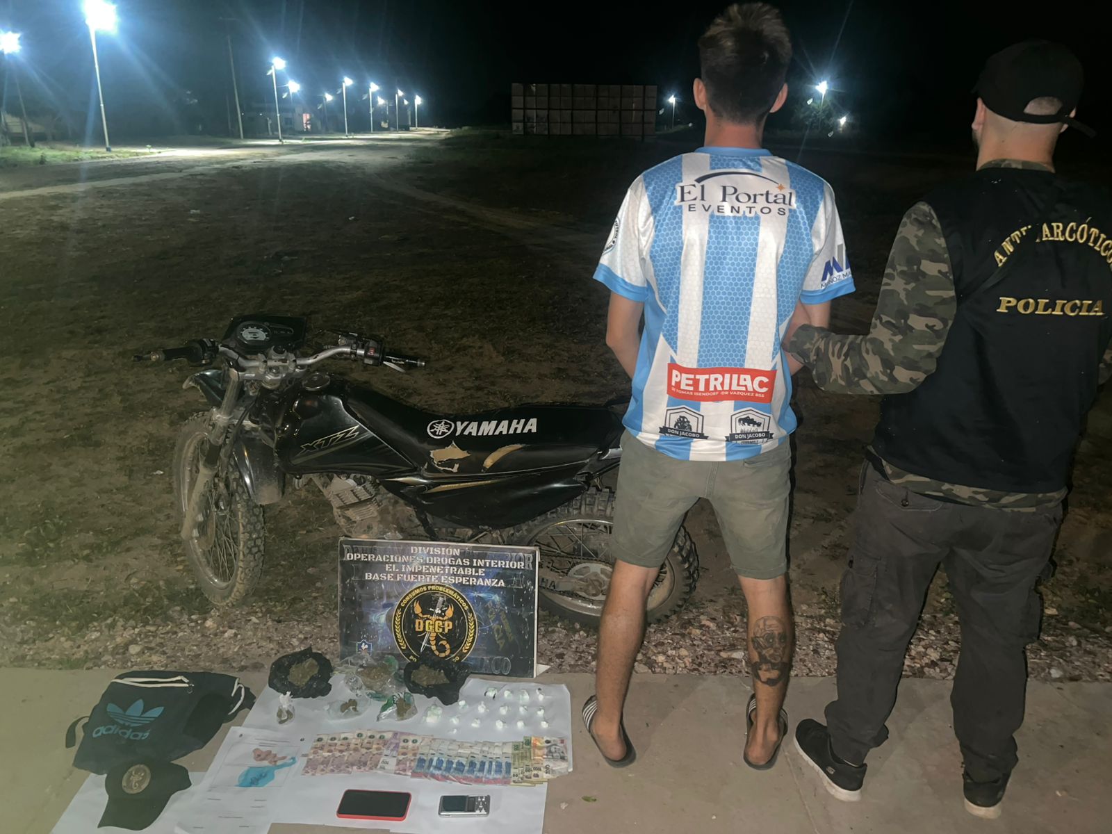 En plena plaza de Las Hacheras En un operativo cerrojo realizado por la División de Operaciones de Drogas de Fuerte Esperanza, se detuvo a un joven de 21 años que comercializaba estupefacientes en la zona. Se secuestró una motocicleta, dinero en efectivo y dosis de sustancias listas para la venta. Tras semanas de tareas investigativas, los efectivos habían identificado a un sujeto conocido como "Nahuel", con domicilio en Miraflores, quien frecuentaba la plaza local para vender droga a jóvenes de la zona. Para dar con él, la prevención policial debió recorrer más de 120 kilómetros desde su base operativa y montar un dispositivo de vigilancia discreta. El operativo Cerca de las 00:20 horas, el sospechoso arribó al lugar a bordo de una motocicleta Yamaha XTZ 125cc negra. Al notar la presencia policial, intentó darse a la fuga, pero fue rápidamente interceptado por los agentes. Al requisar la mochila del aprehendido de 21 años se halló: Marihuana: 6 envoltorios con un total de 269 gramos de cannabis sativa. • Cocaína: 16 envoltorios que contenían 76 gramos de una sustancia blanquecina de alta pureza. • Dinero y tecnología: $7.400 en efectivo y un teléfono celular Samsung Galaxy A16. Intervención Judicial La Fiscalía de Antidrogas de Sáenz Peña, a cargo de la Dra. Laura Soledad Borelli, dispuso el secuestro inmediato de la droga, el vehículo y las pertenencias del joven, quien quedó detenido bajo la imputación de infracción a la Ley 23.737 de Estupefacientes, en concordancia con la Ley Provincial 2304 de Narcomenudeo. Las autoridades destacaron el éxito del operativo en una zona de difícil acceso, reforzando el compromiso de la fuerza en la lucha contra la comercialización de drogas en las comunidades de El Impenetrable.
